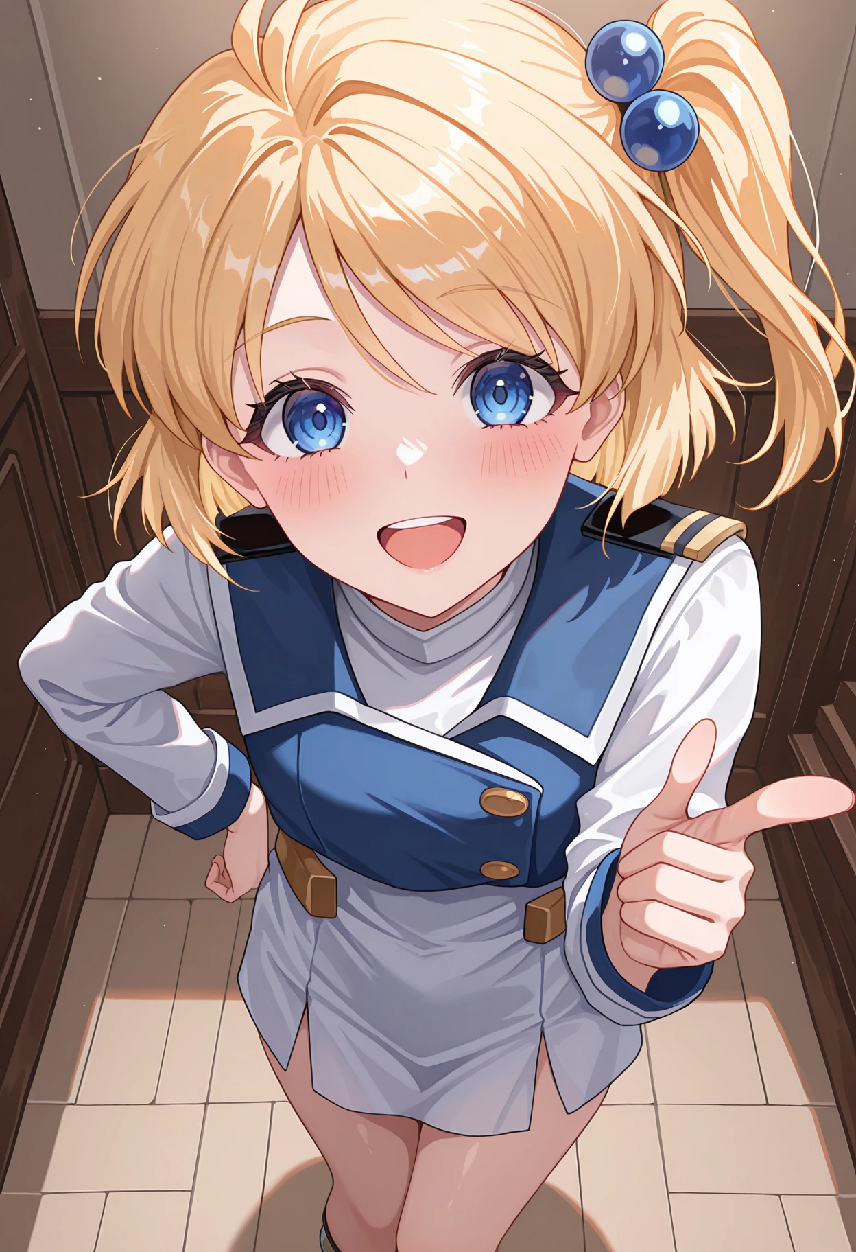 presrtdef, military dress, white dress, blue vest, short dress, long sleeves, loose socks, shoes,