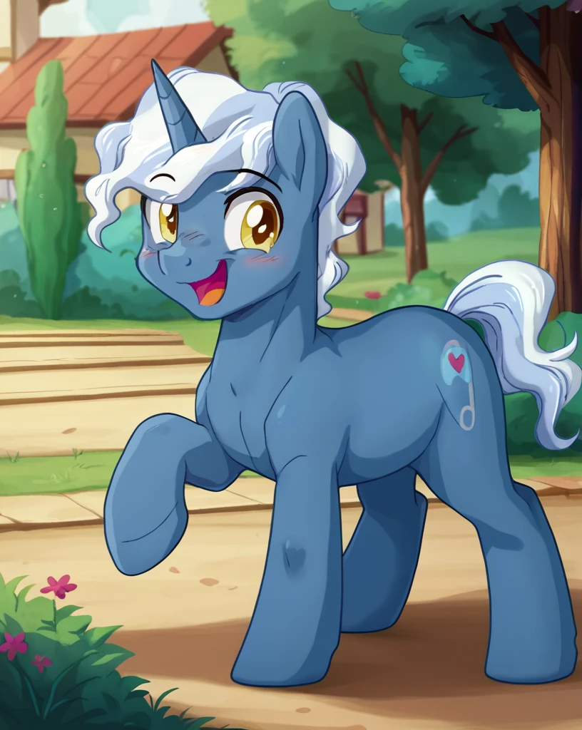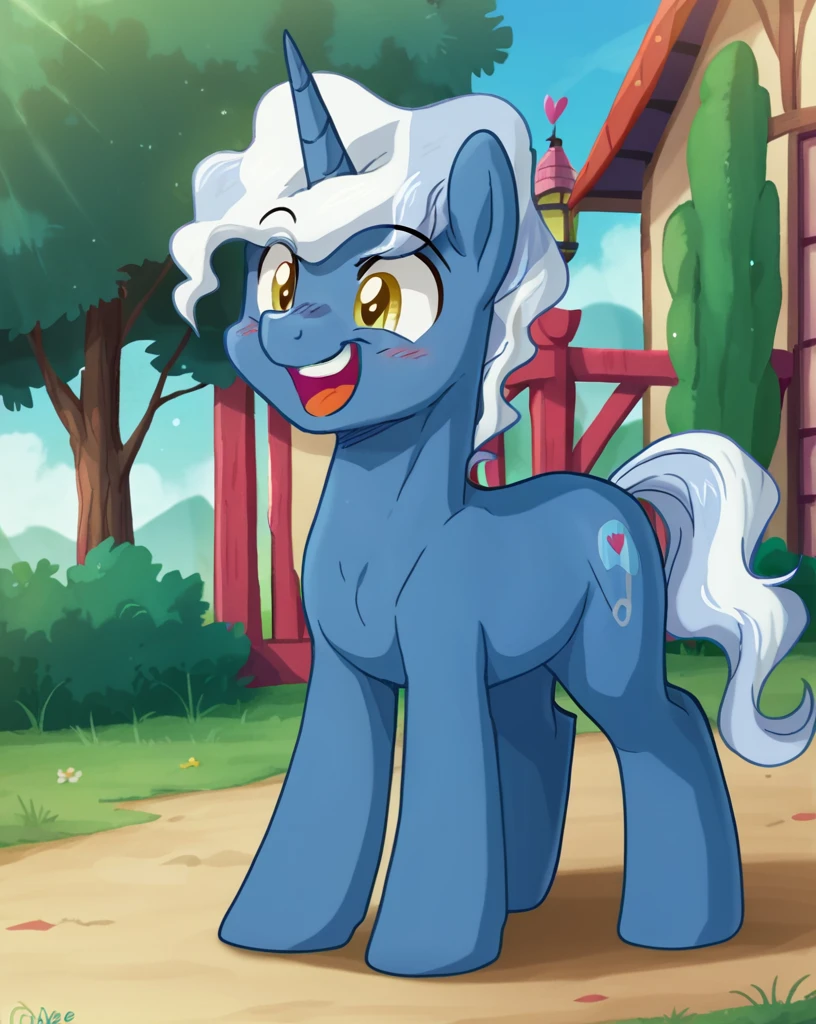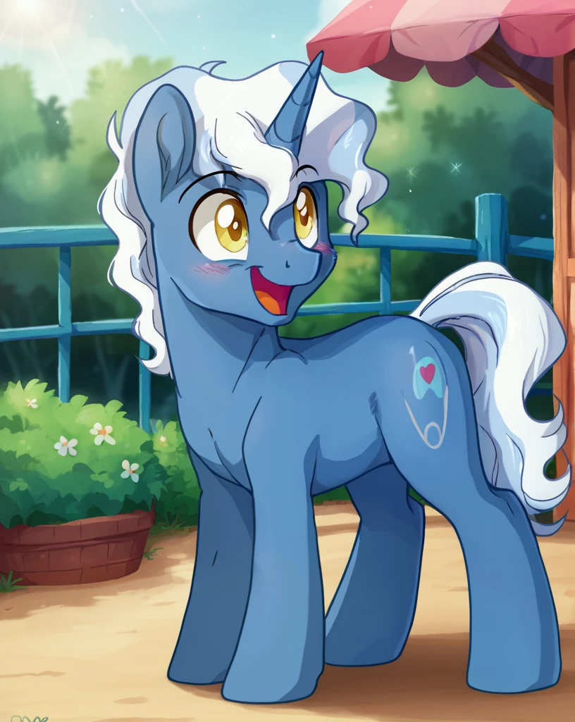 pokey pierce, unicorn, pony, white hair, blue fur, yellow eyes