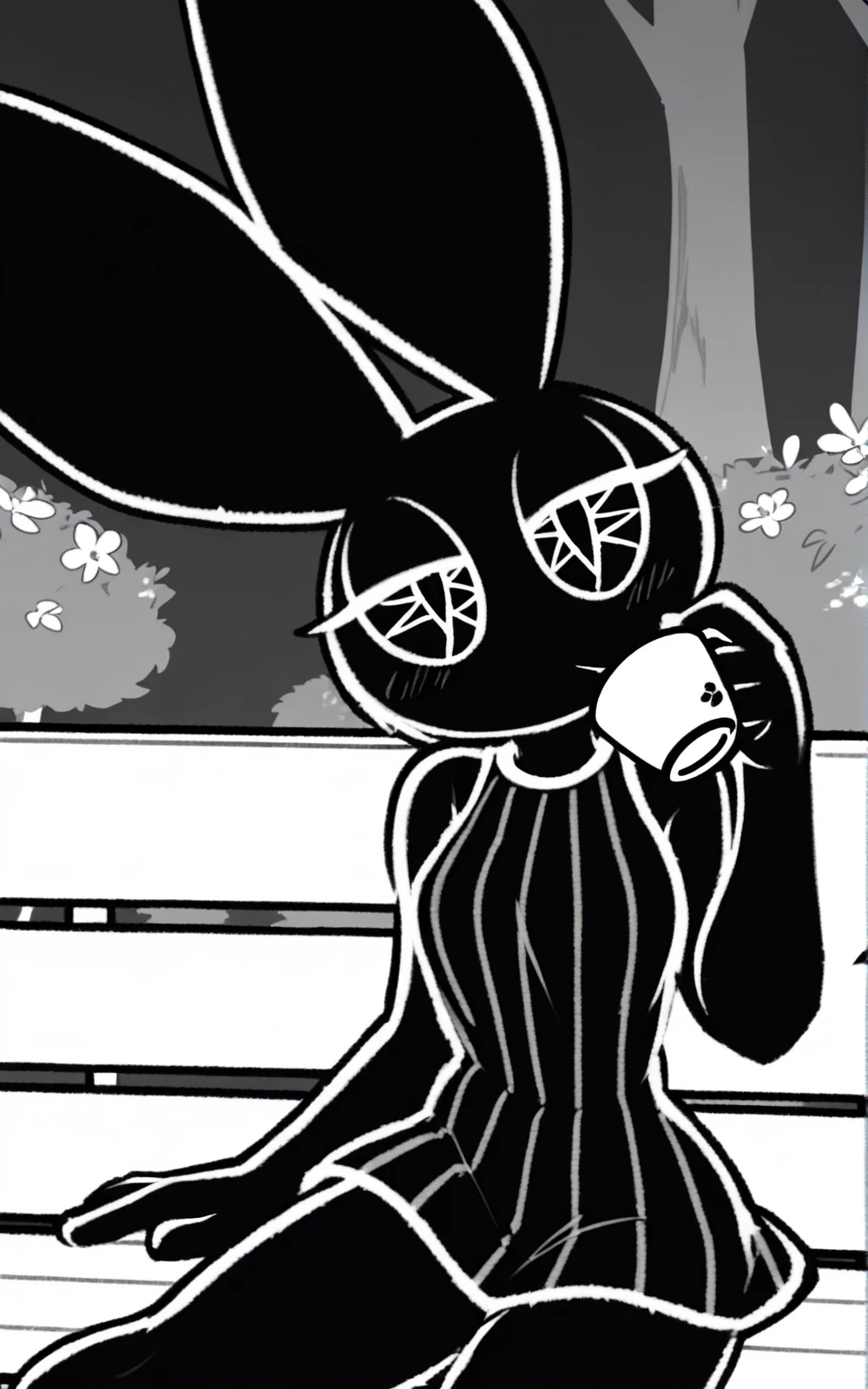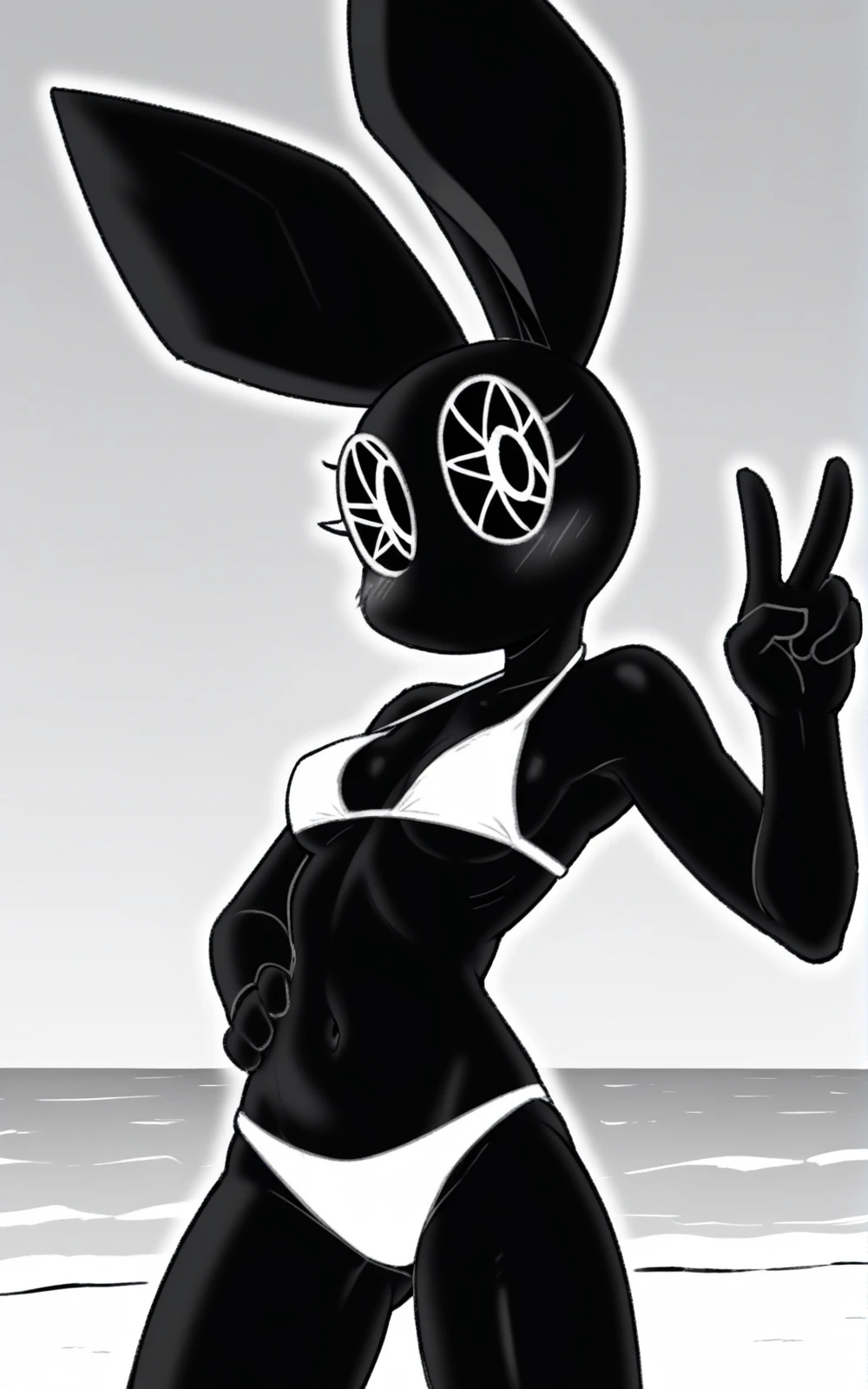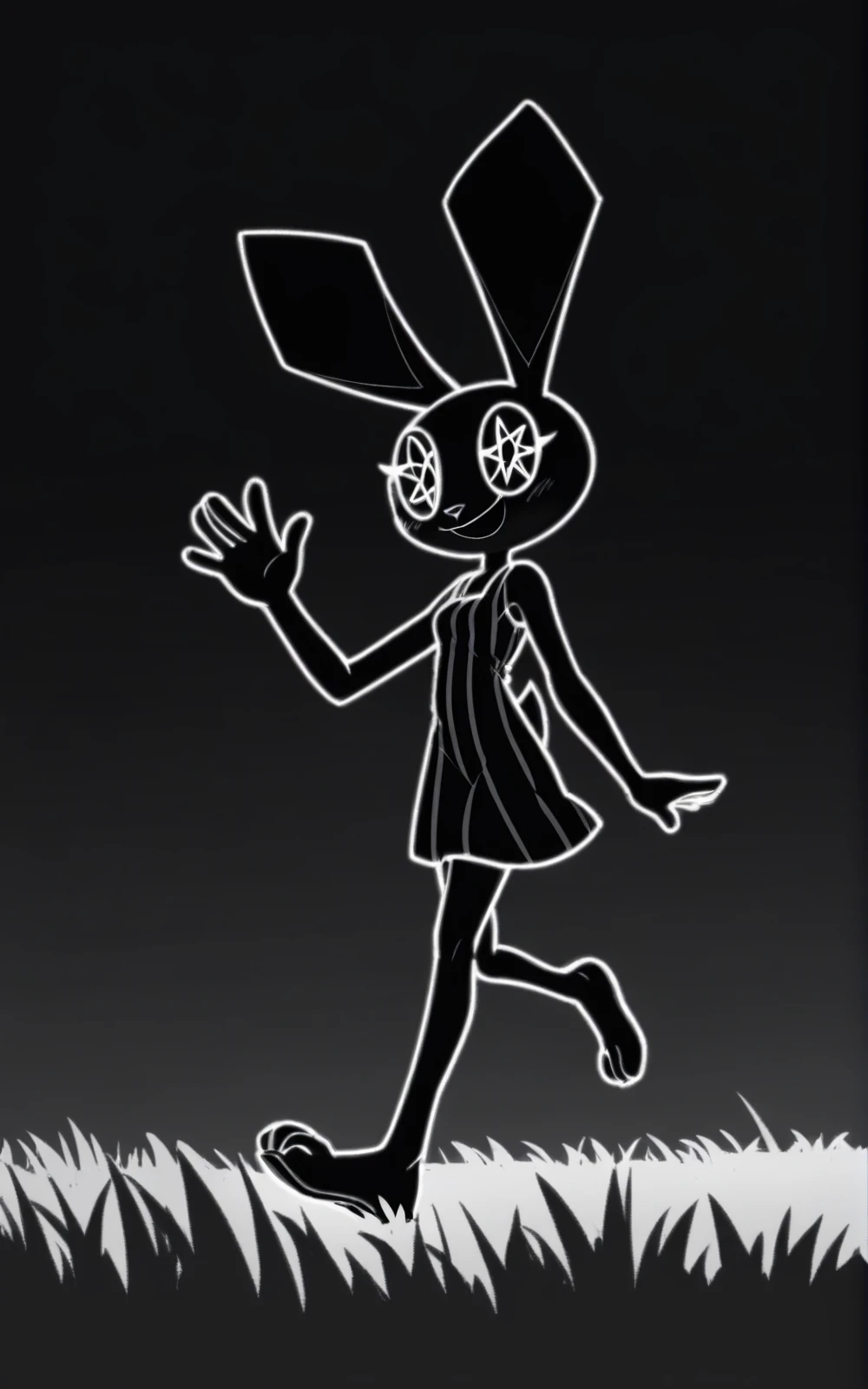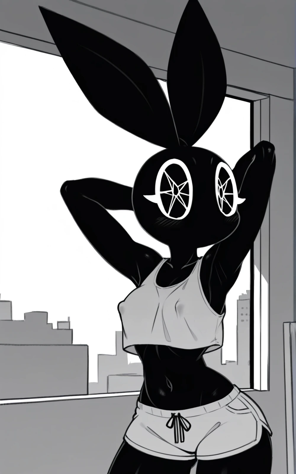 Reinforcement Tags: furry, animal ears, furry female, black skin, polygon,octagram eyes, black eyes, symbol-shaped eyes, complex eyes, black sclera, black pupils