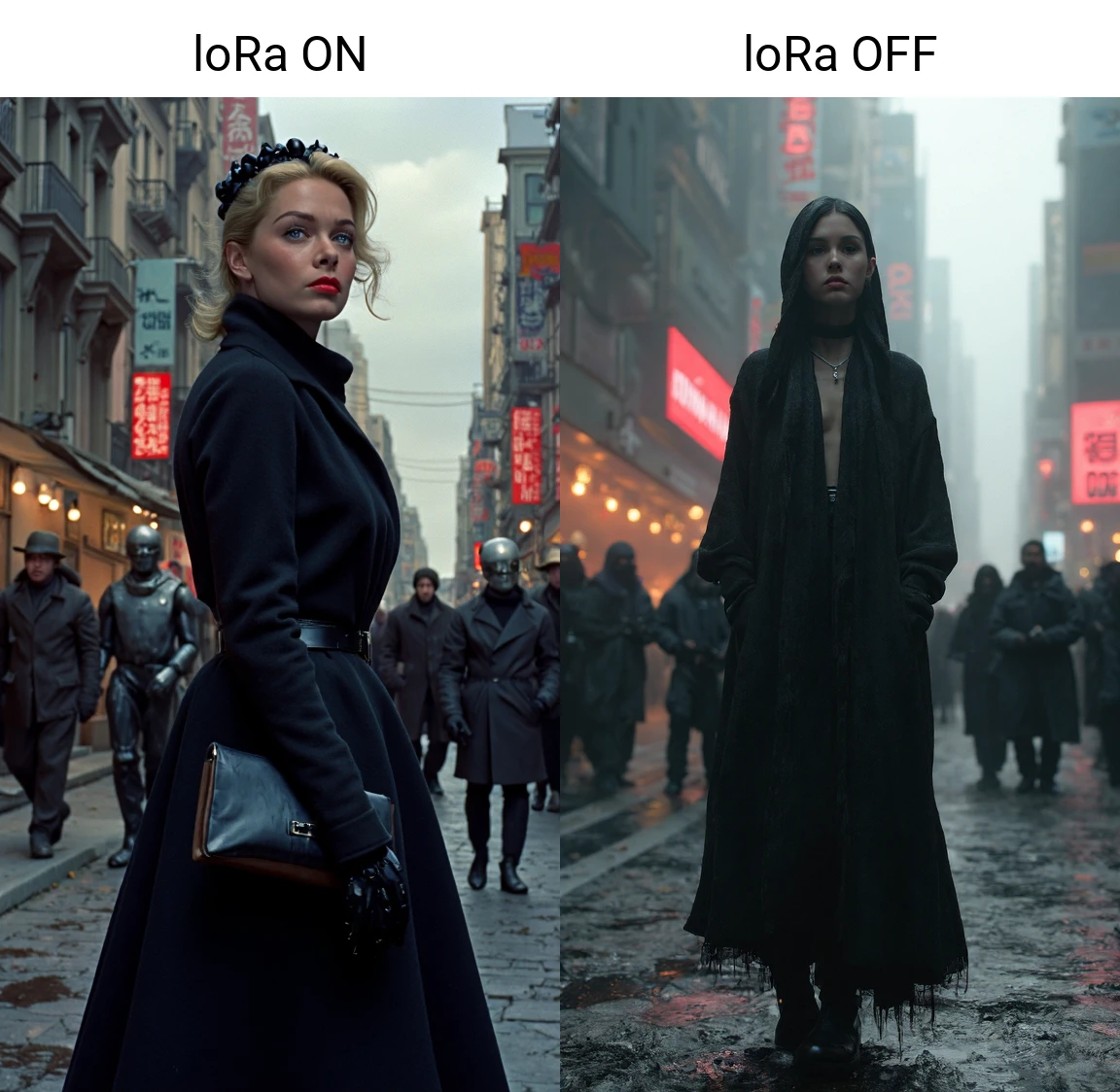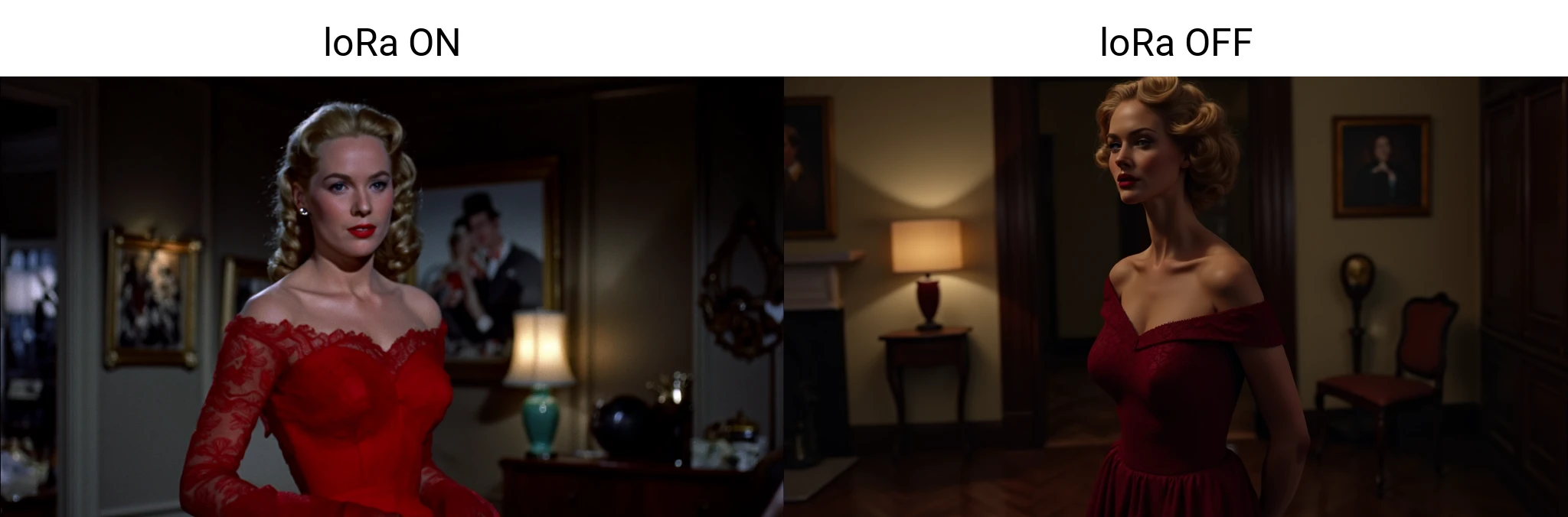 For this model the dataset was composed of screencaps of some of the films. I selected scenes from the films "Rear Window, Vertigo, The birds, Dial M for ??????". My selection was made by focusing on the composition, lights and colors. I also inserted several scenes where what you see from the windows of cars or houses are clearly screens. In fact the model has learned this too, so it reproduces old film sets.