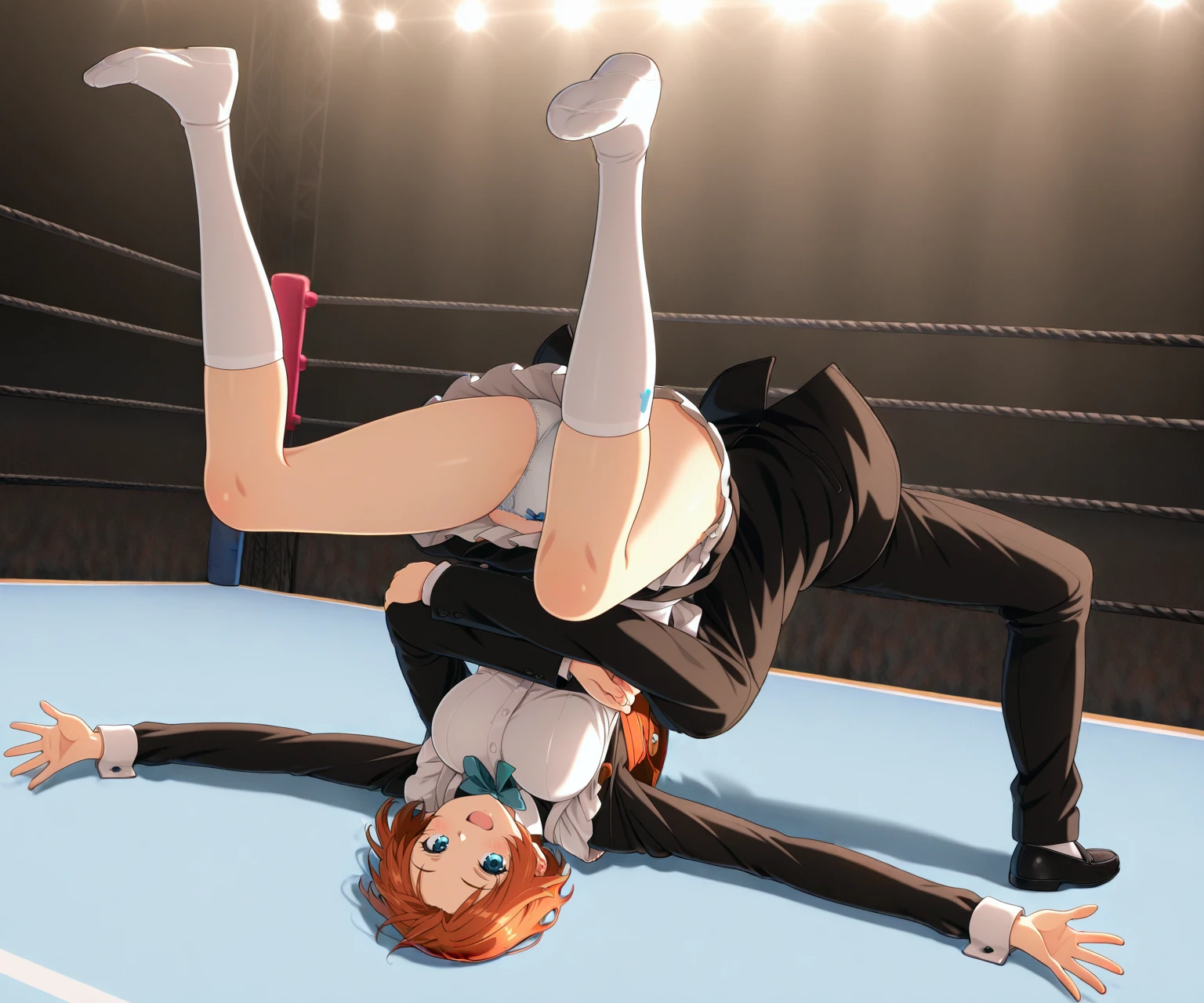 ジャーマンスープレックスの掛け終わりで地面に叩きつけている瞬間ポーズ。