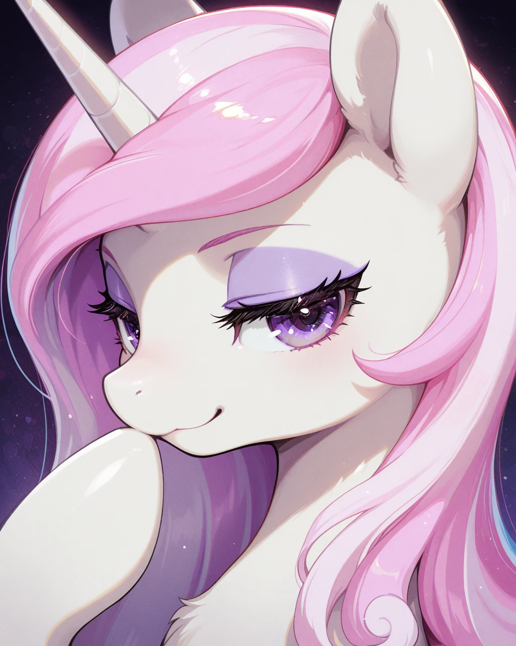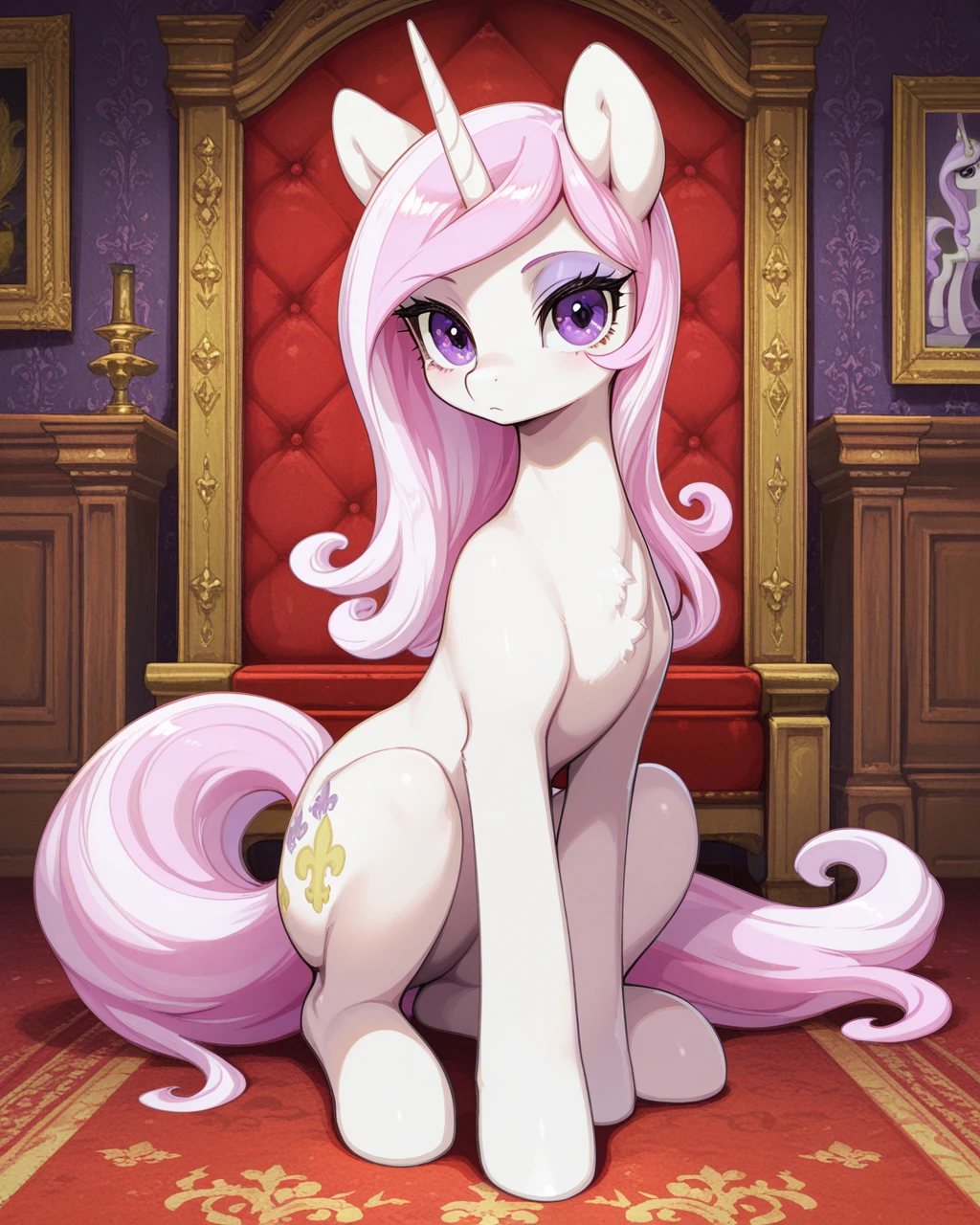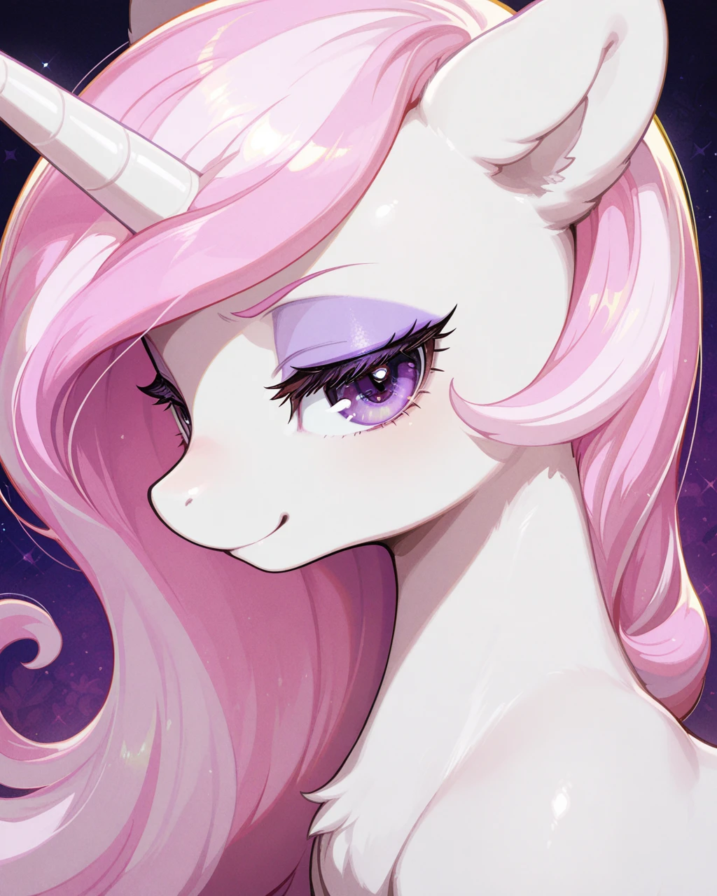 fleur-mlp, pony, unicorn, pink hair, white body, purple eyes, purple eyeshadow