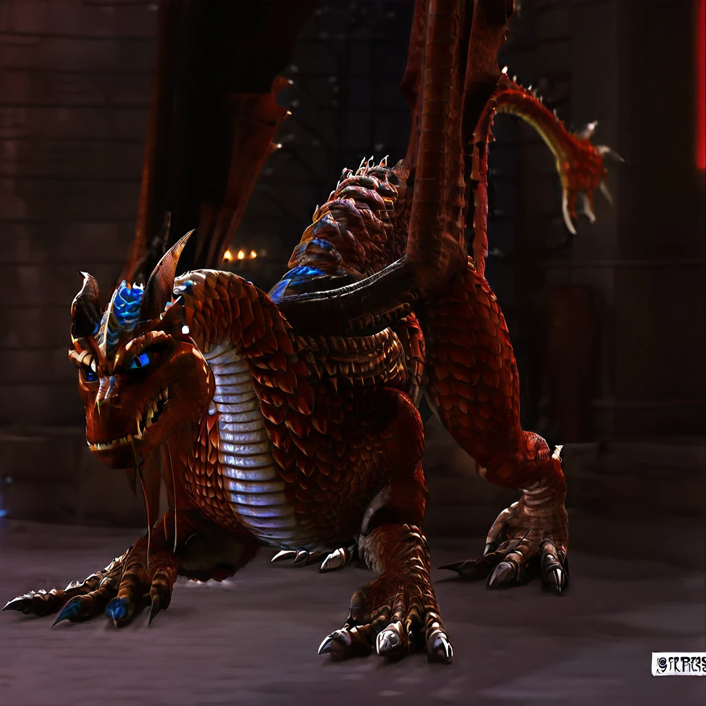 dragon pecs griffin_dh2 scary smile realistic fantastic dragonheart 2 ambience scales. no humans horns claws realistic body solo blue eyes wings