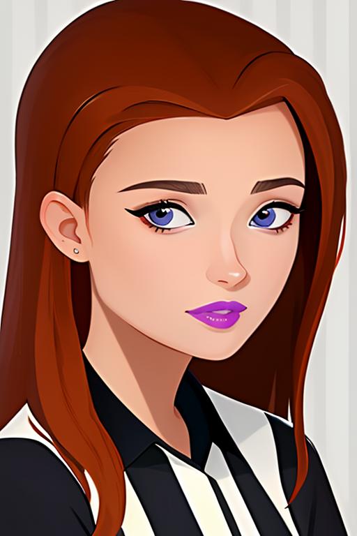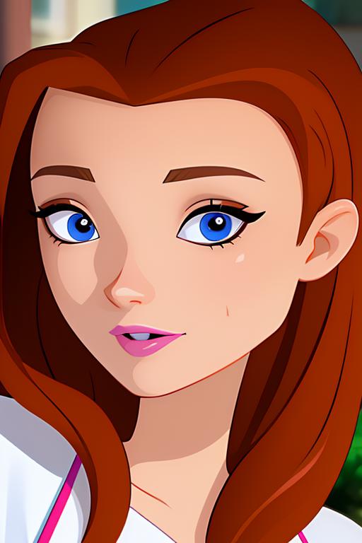 Jen Masterson from the show 6Teen. I generally use it in a range of 0.5-0.7, more than that will generally get a bit fuzzy. You may need to play with the strength a bit depending on the checkpoint used. Due to the dataset, and selection of high quality images, I did not include her work uniform. However, prompting for a 'referee uniform' will probably work fine.