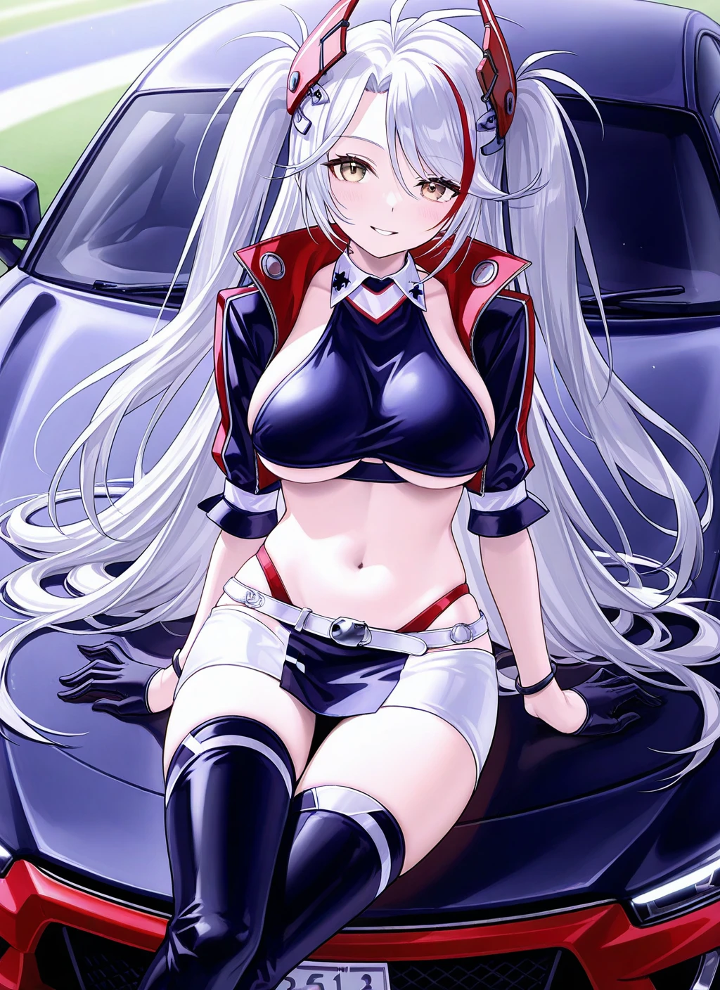 Final Lap:prinz_eugen_(final_lap)_(azur_lane),race queen, cropped shirt, cropped jacket, miniskirt