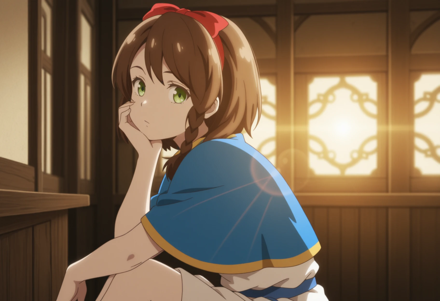 Trigger Words: rin_lostsong, brown hair, green eyes, braid, hair bow, hairband