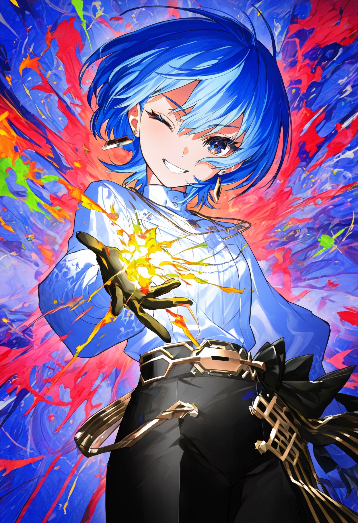 hand up, sparks / energy ball, paint splatterNo NSFW is allowed