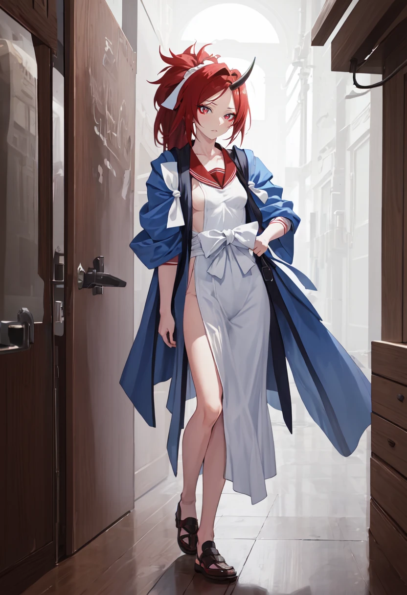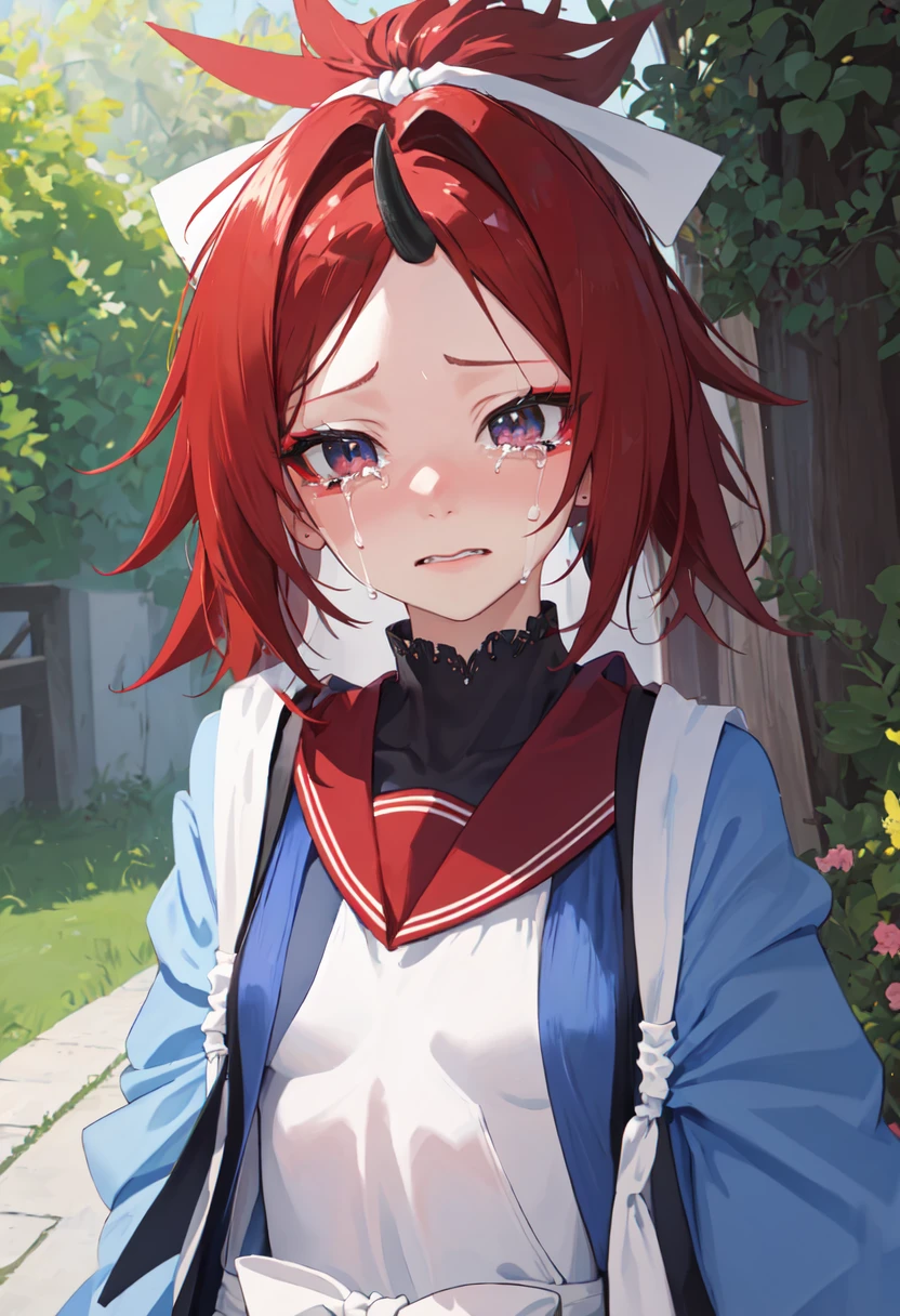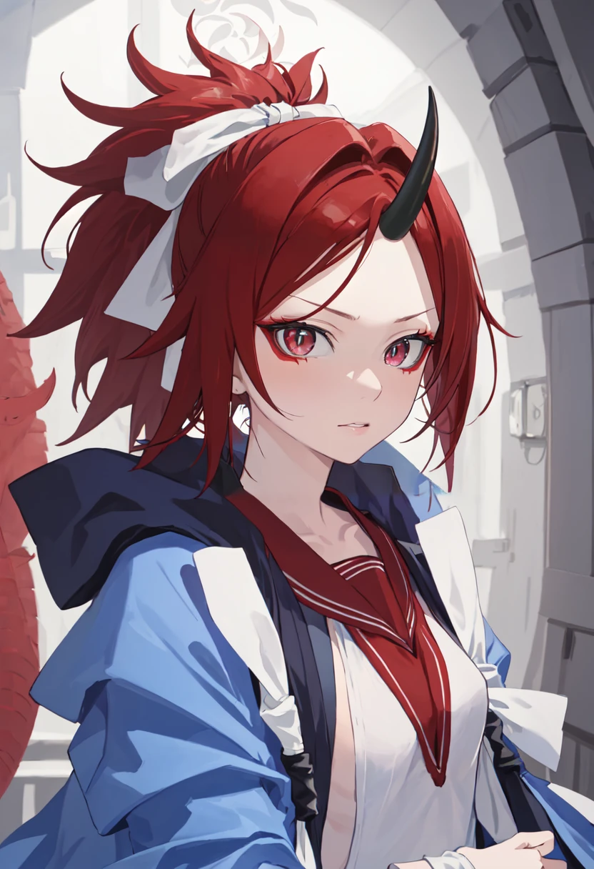 - The pruned character tags are horns, long hair, red hair, single horn, halo, black horns, ponytail, red eyes, breasts, small breasts, tail, dragon tail, red eyeshadow, eyeshadow, red halo, red tail. You can add them into prompts when core features (e.g. hair color) of character is not so stable.