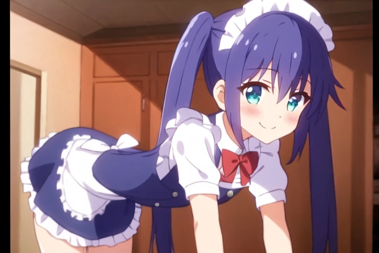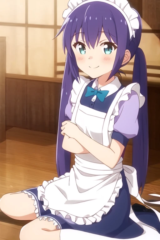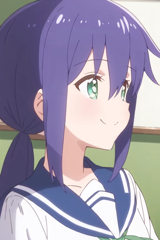 1girl,bangs,blue sailor collar,white sailor suit,closed mouth,eyebrows visible through hair,hair between eyes,letterboxed,long sleeves,neckerchief,purple hair,sailor collar,school uniform,serafuku,smile,solo,blush,