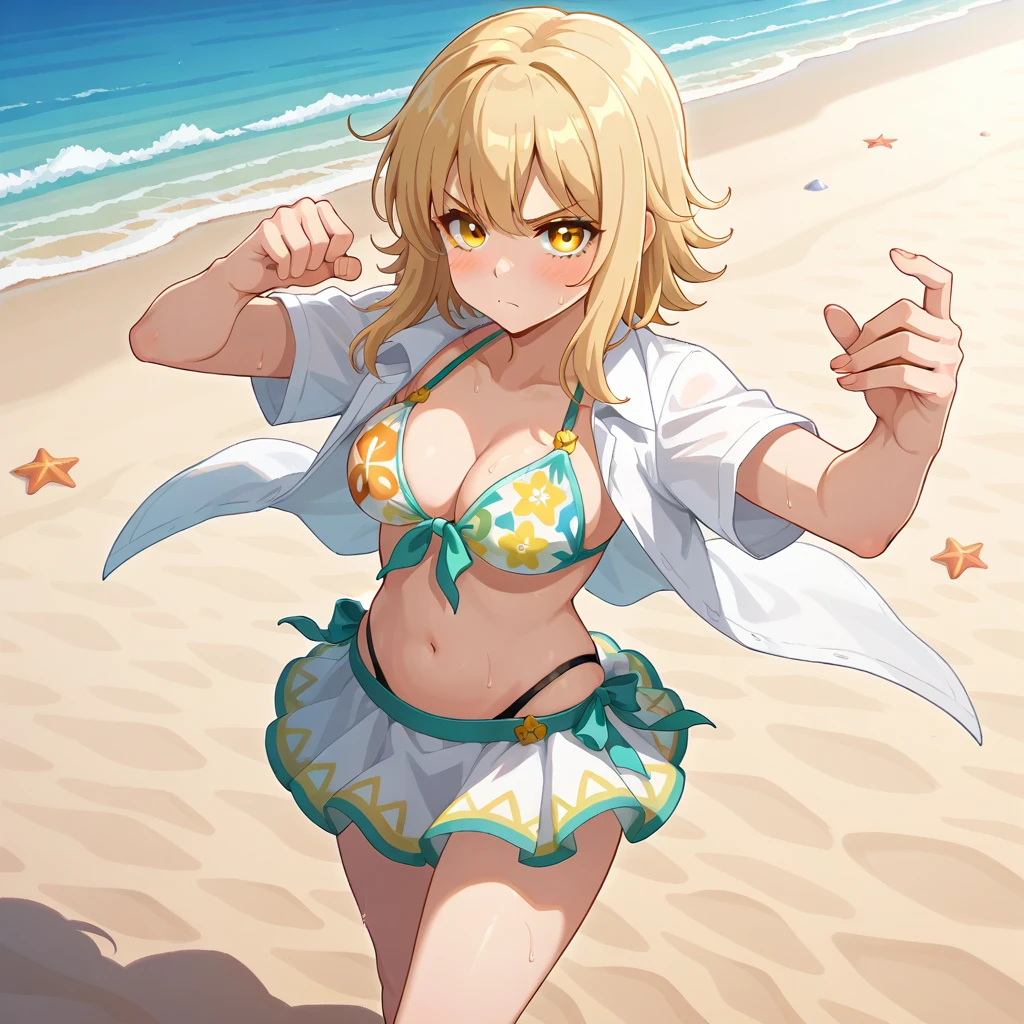 negative prompt: bad quality, worst quality, worst detail, normal quality, sketch, censor, censored, bar censor, multicolored theme, blurry, simple background, bad ???????, text, pixelated, hands up, fewer digits, extra digits, green eyes, web address, twitter username, purple eyes, red eyes, hair ornament, hair flower