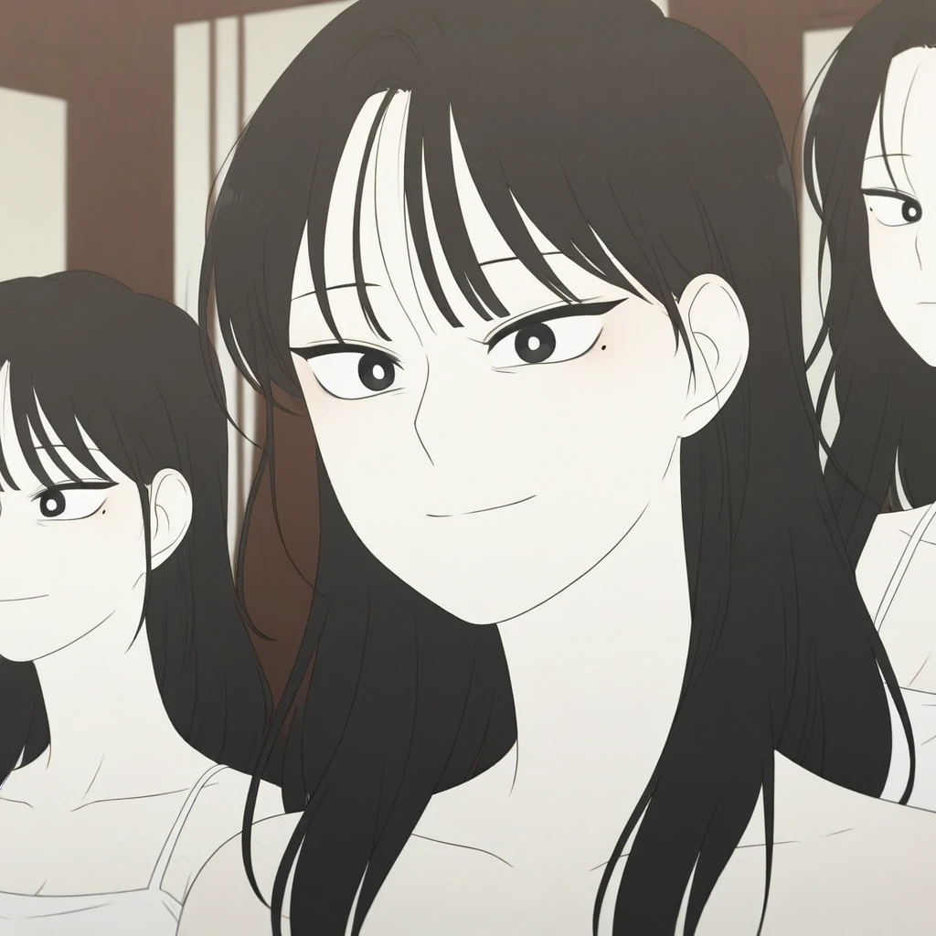 jarims12, mature female, 25 year old, 1girl, detailed face, round pupils, black eyes, white pupils, mole under eye, outlines