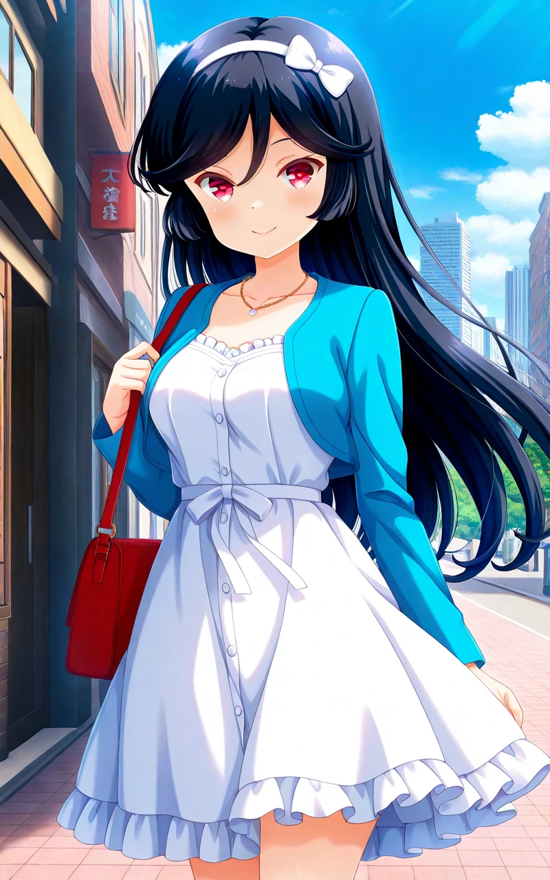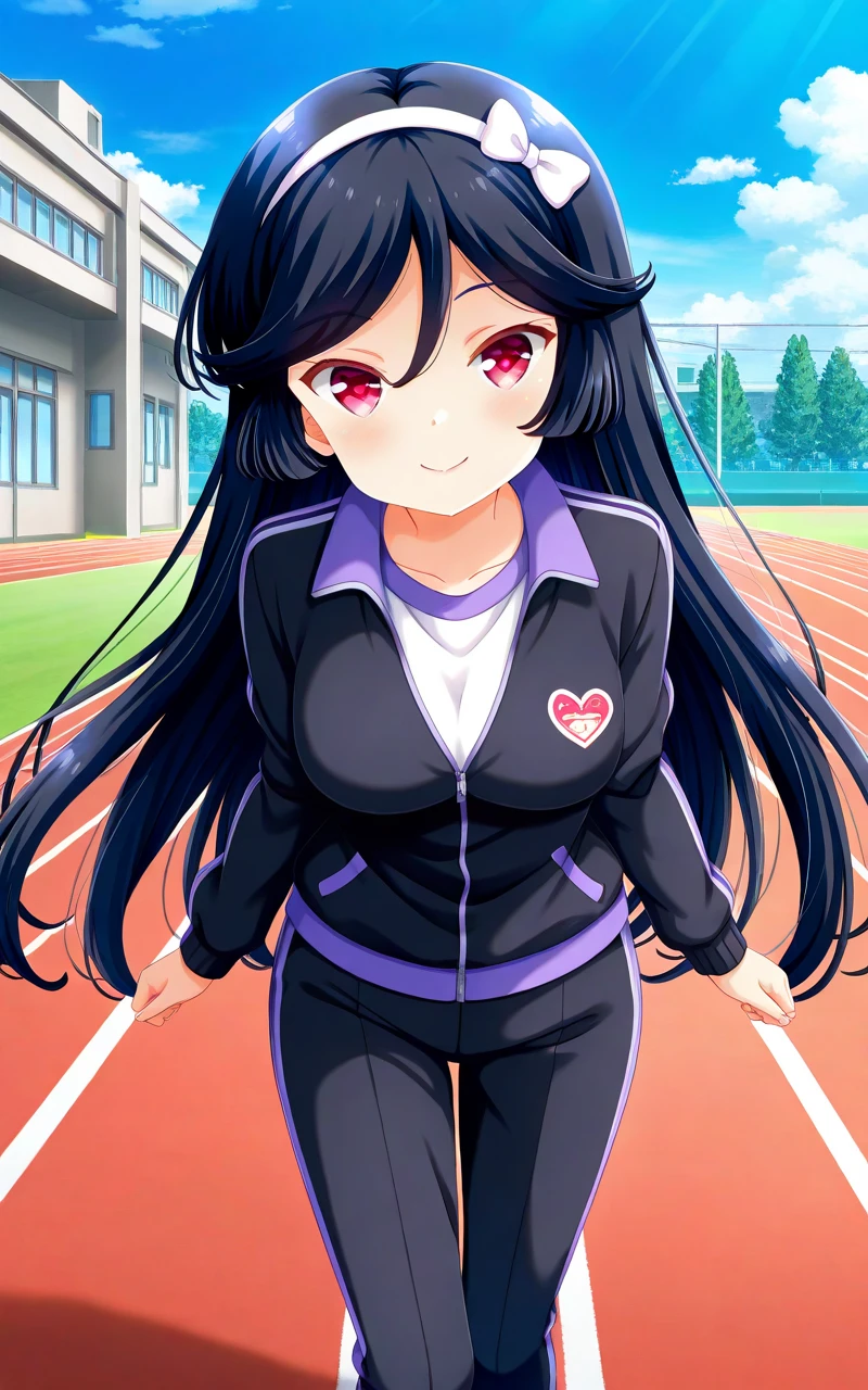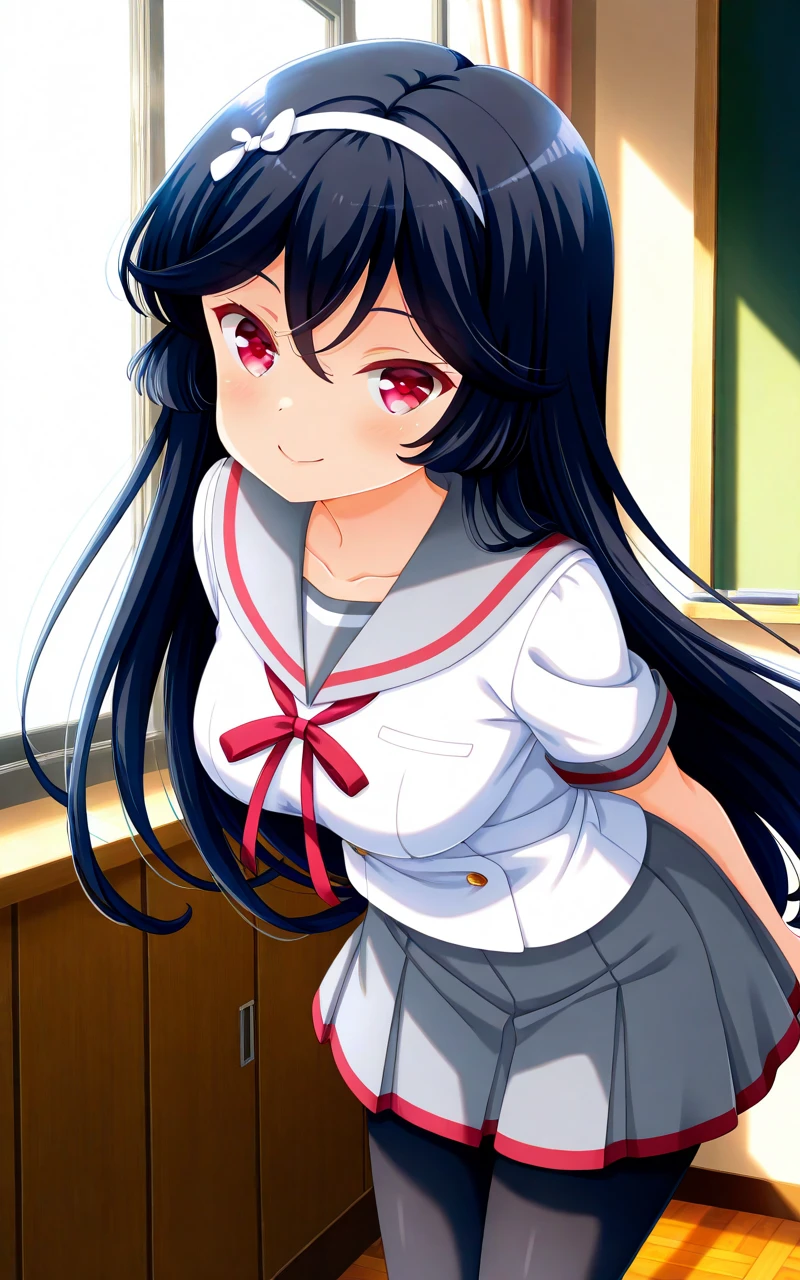 Trigger words: kunishiromiyabi, black hair, white hairband, hair between eyes, very long hair, red eyes