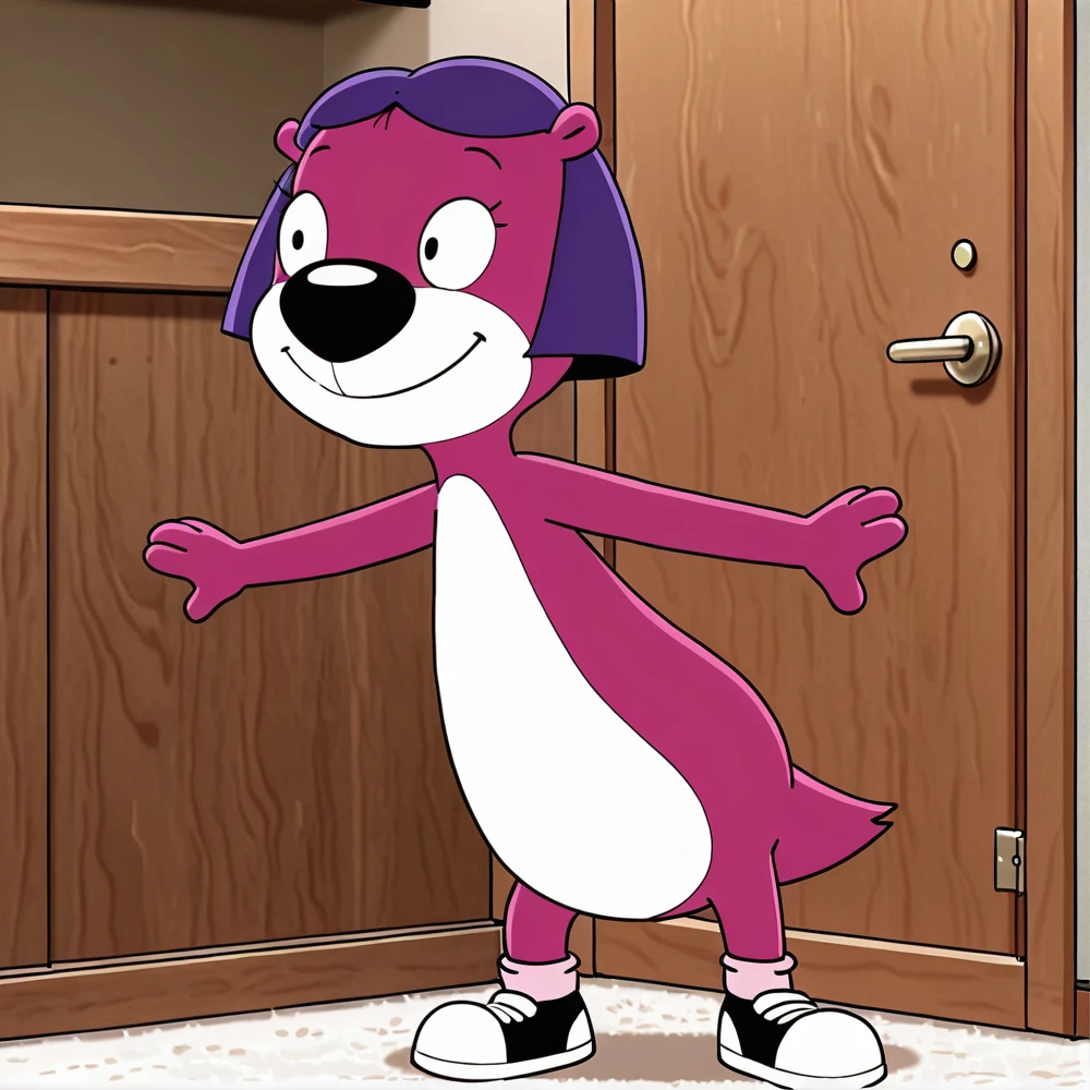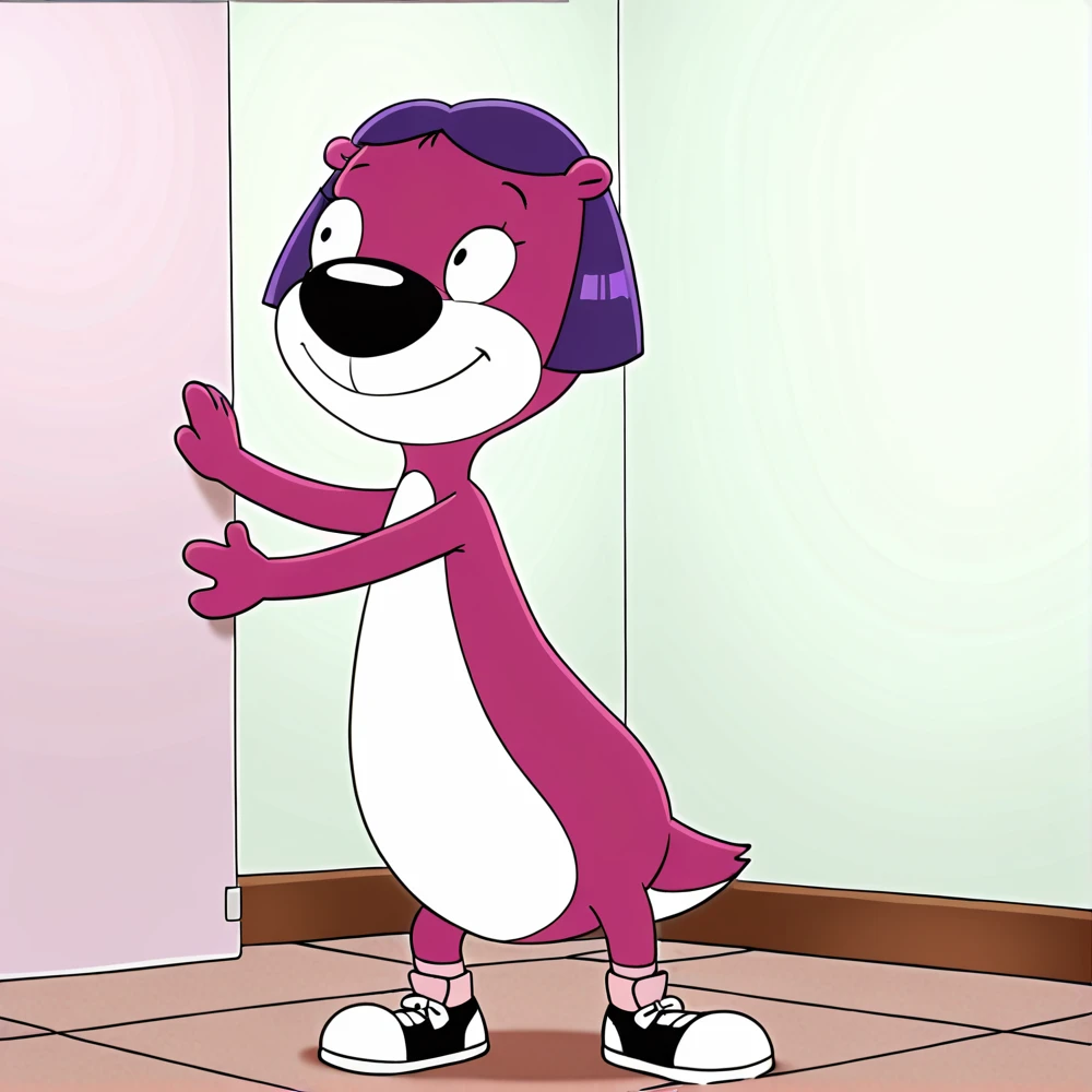 j3lly_otter, animal ears, animal nose, purple hair, short hair, two-tone fur, otter, furry, 1girl, black eyes, tail