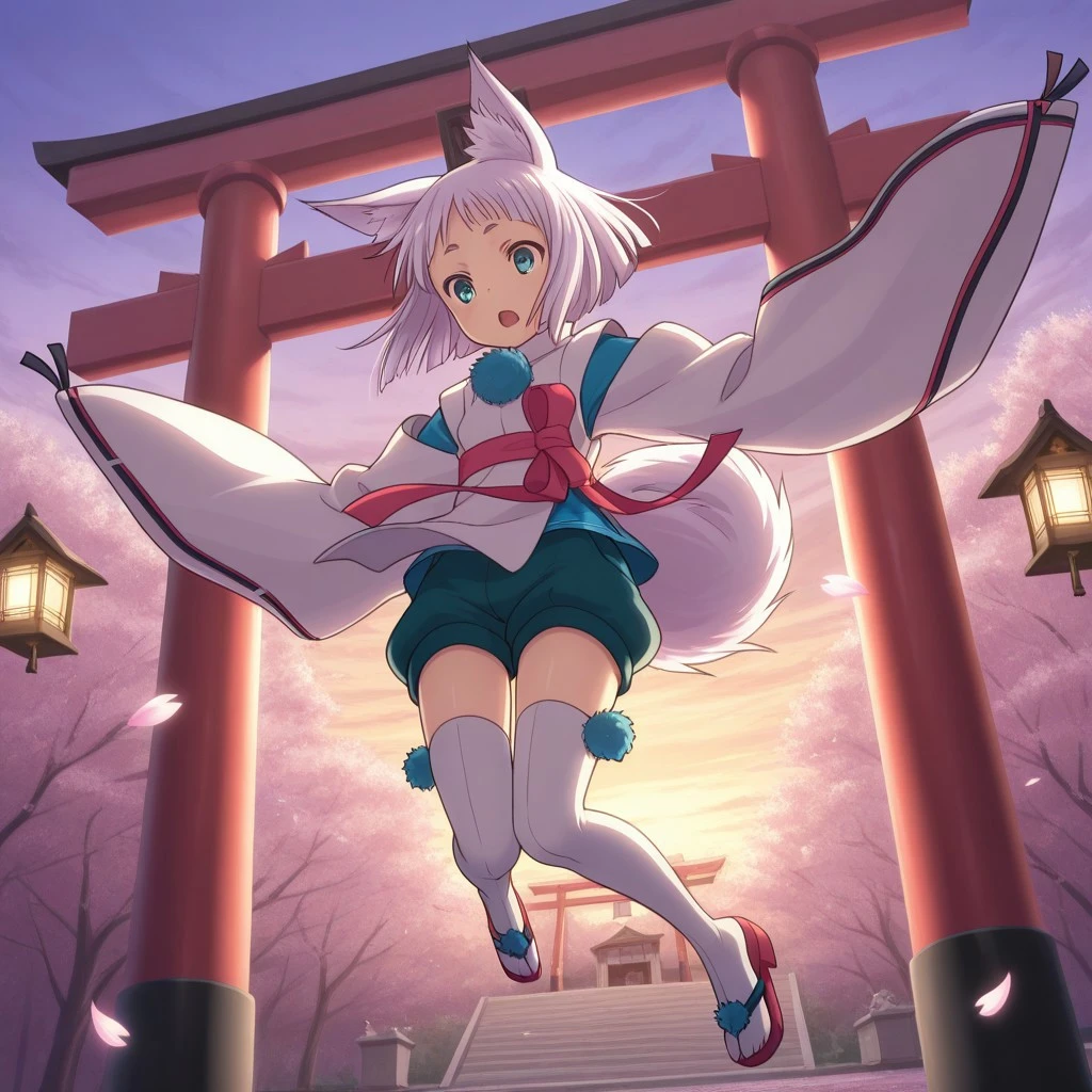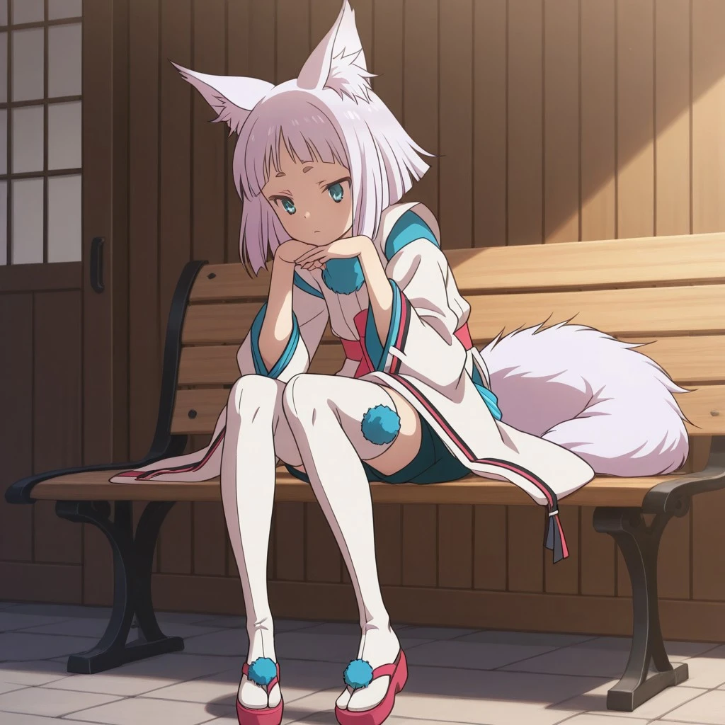kon_tr, japanese clothes, ribbon trim, shorts, thighhighs, sandals