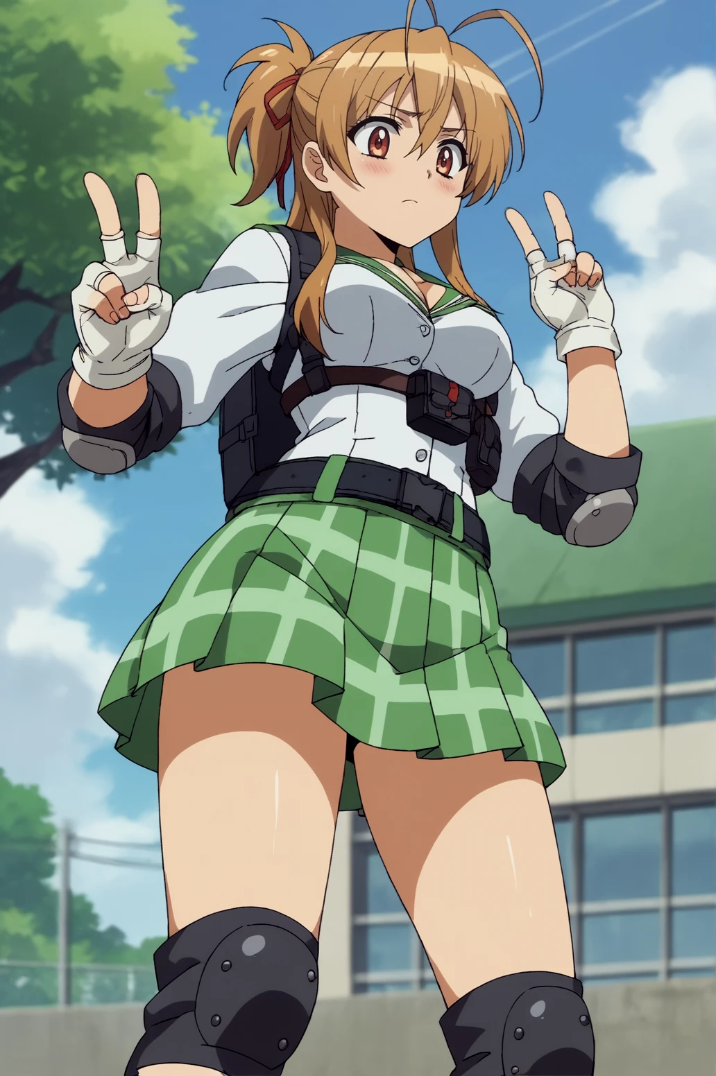 Trigger Words Optionnal: cleavage, school uniform, elbow pads, knee pads, fingerless gloves, white gloves