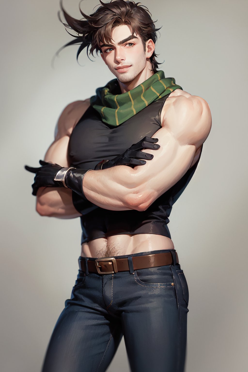 Trigger + Appearance: joseph joestar, (muscular:1.1) male, brown hair