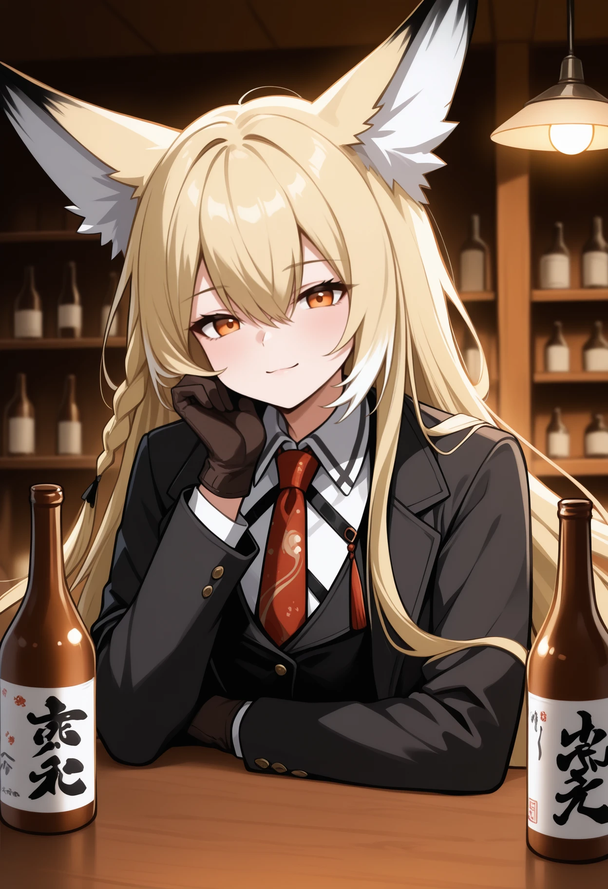 Trigger + Appearance: vulpisfoglia, fox girl, long hair, blonde hair, hair between eyes, braid, animal ears, animal ear fluff, orange eyes