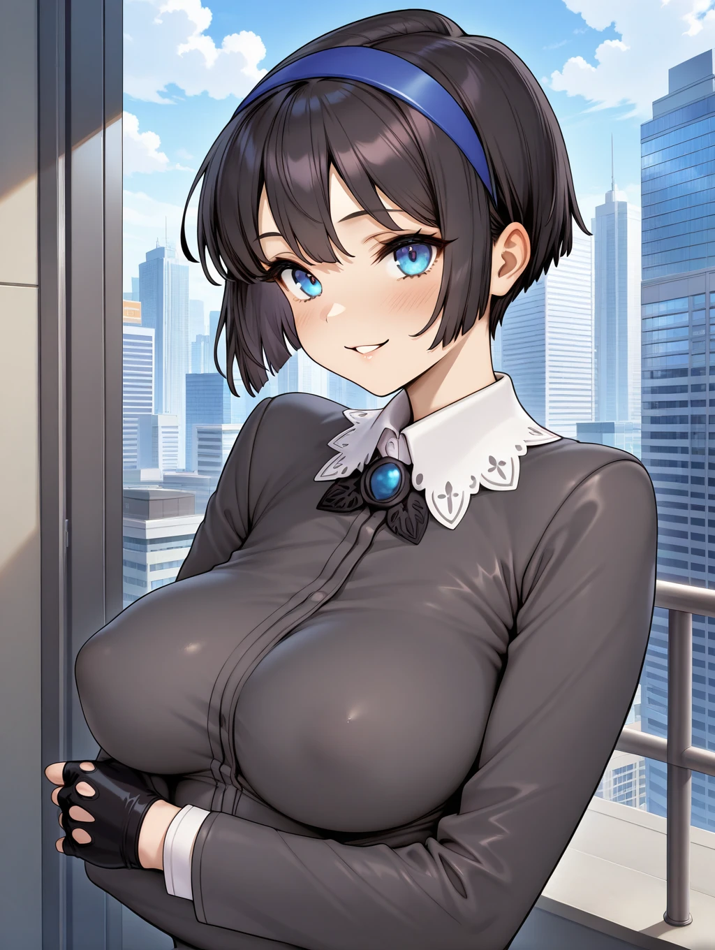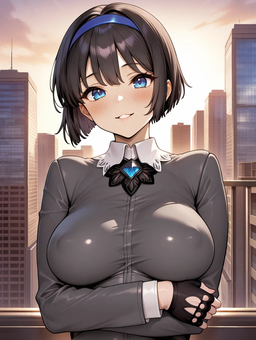 補助ワード  ・blue eyes,black hair,hairband,dark-skinned female,shiny skin,
