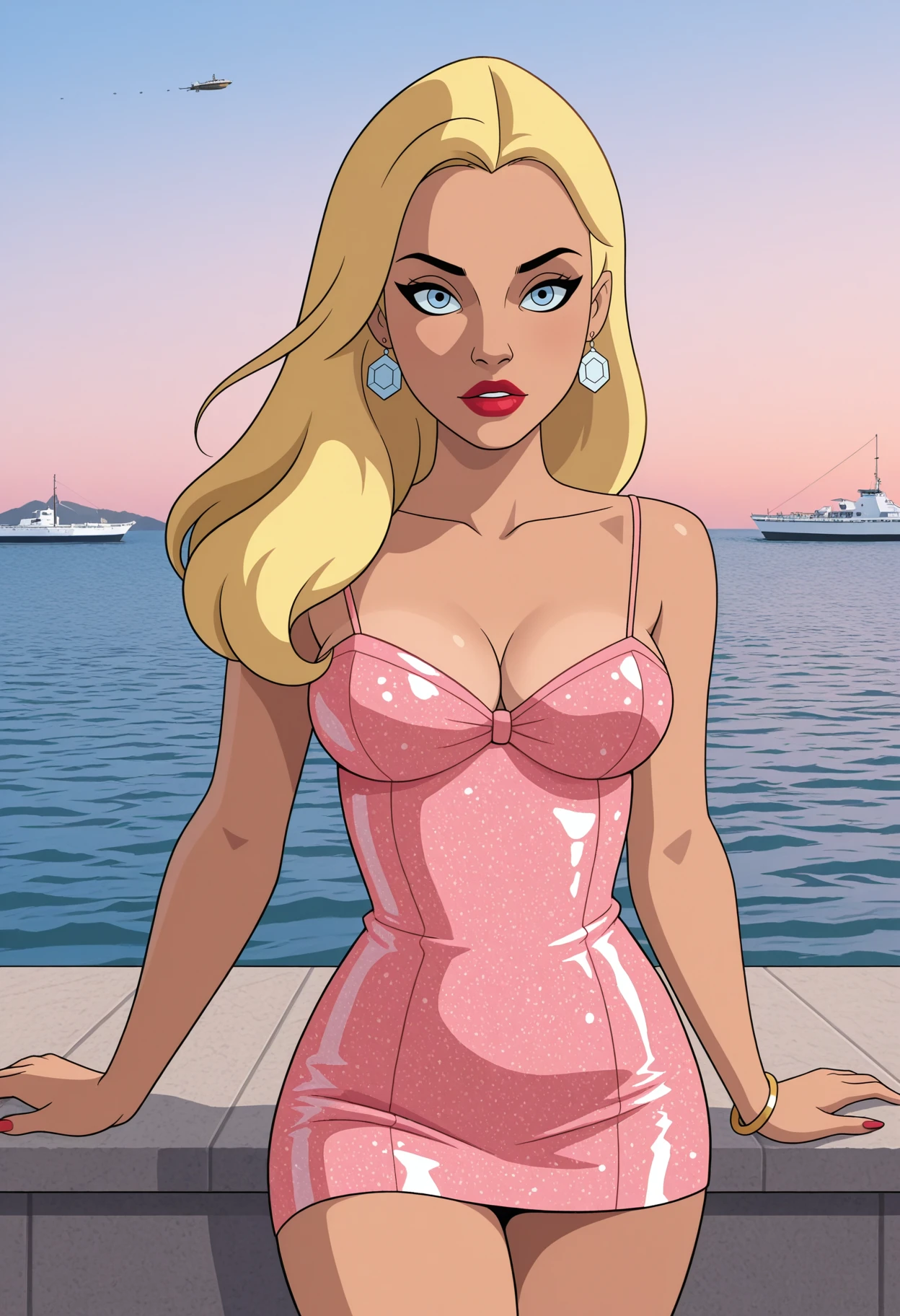 1girl, solo, blue eyes, blonde hair, long hair, breasts, medium breasts, lipstick, red lips,