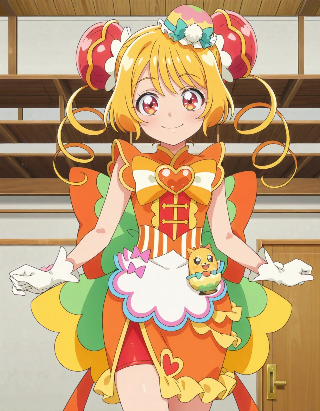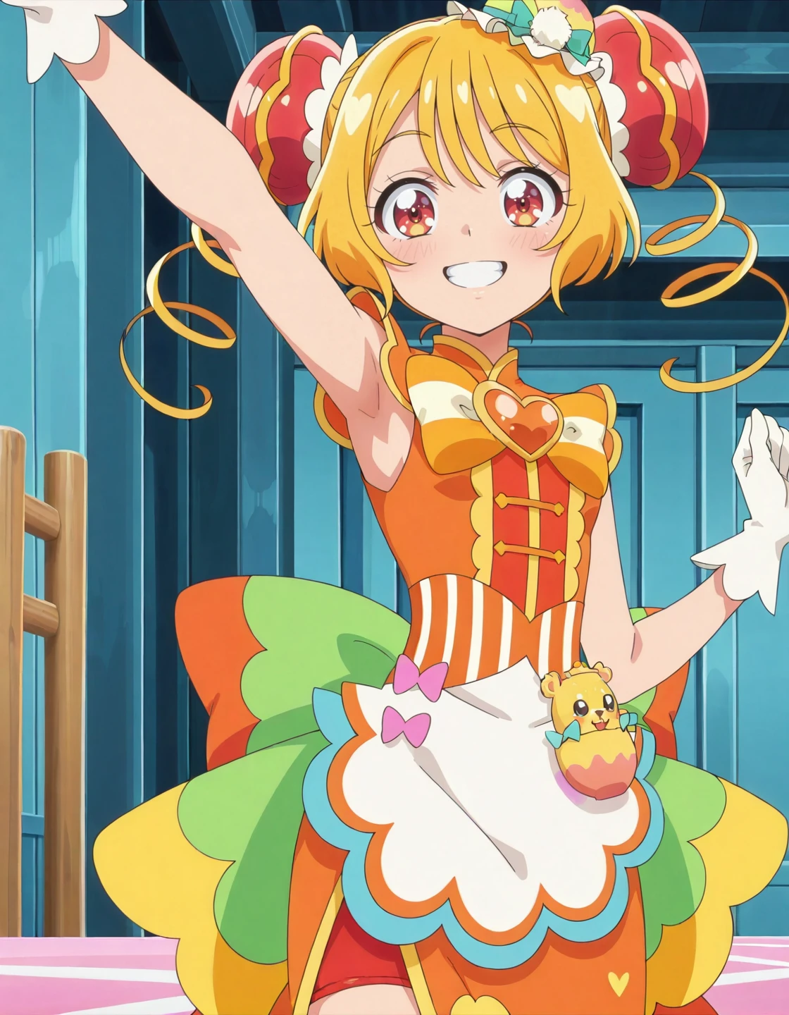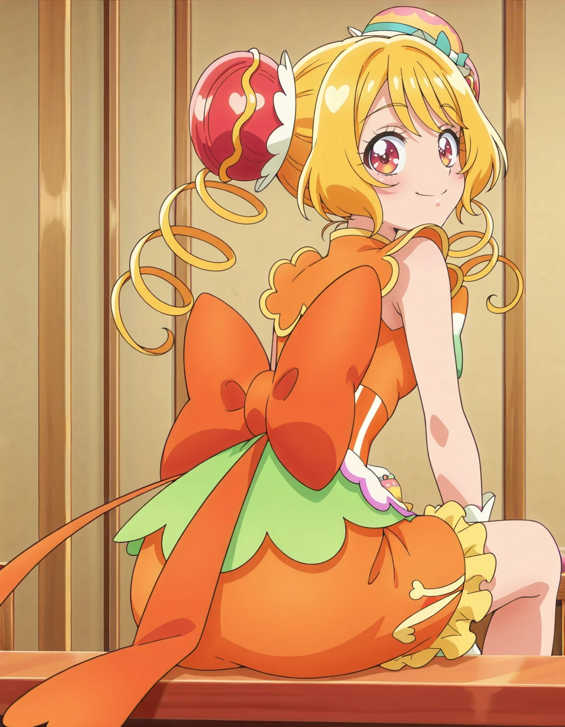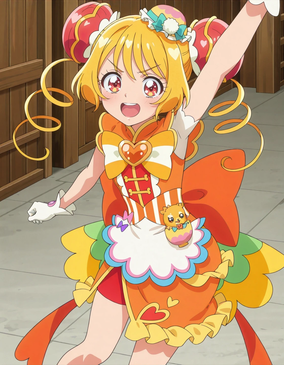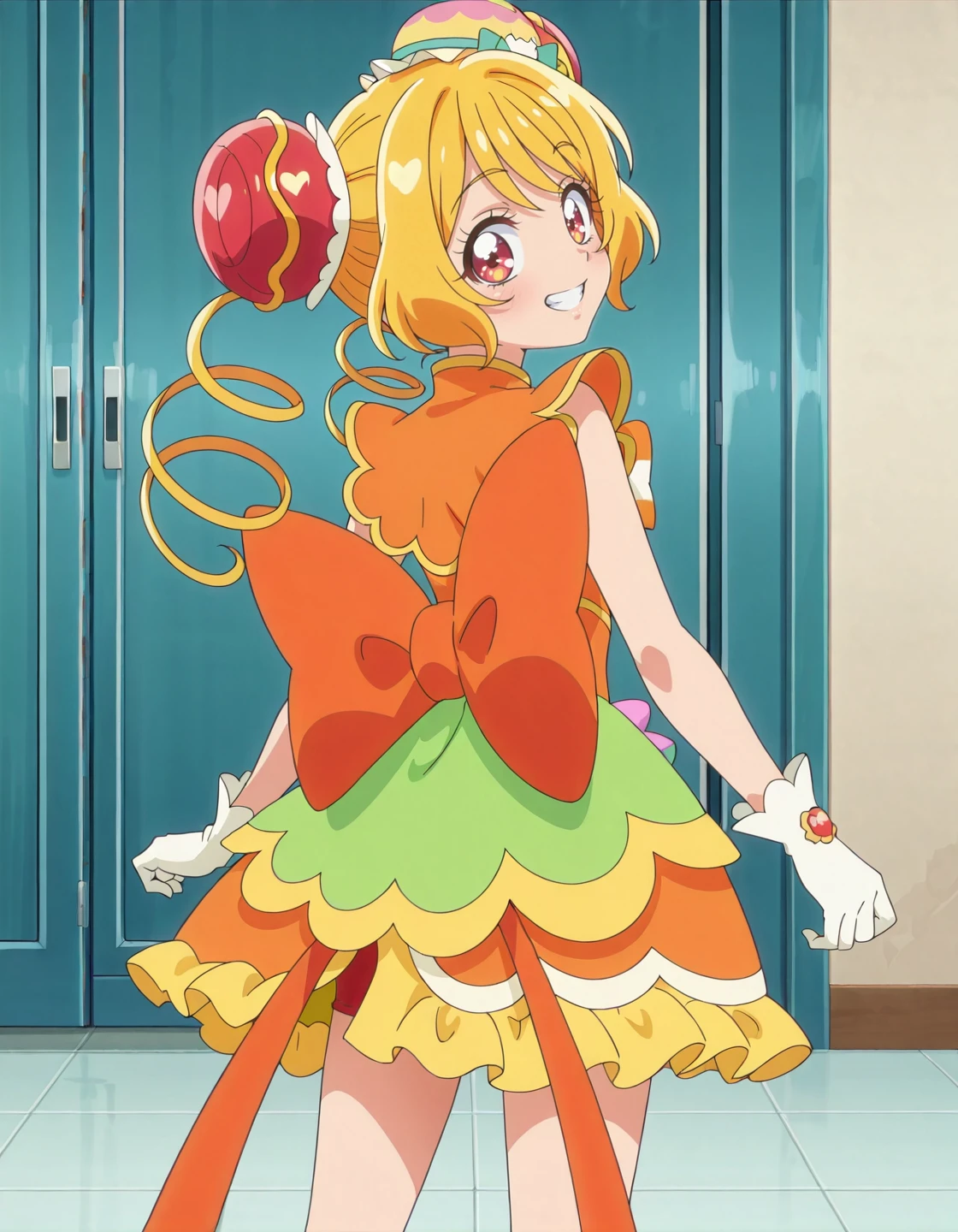 anime screencap,solo,1girl,cureyumyum,yumyumcostume,hair ornament,dress,magical girl,<lora:cureyumyum_IL:0.8>,high definition,amazing quality,best quality,very aesthetic,masterpiece,absurdres