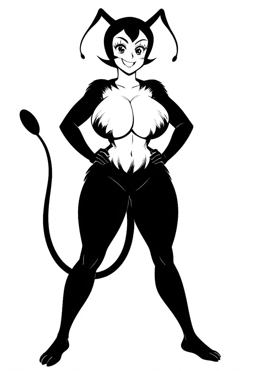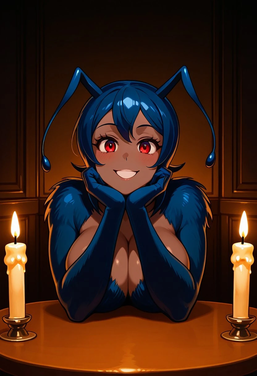 basic prompt words: 1girl, mefisuto_dansu, antennae, black hair, big breasts, tail, demon girl, monster girl.