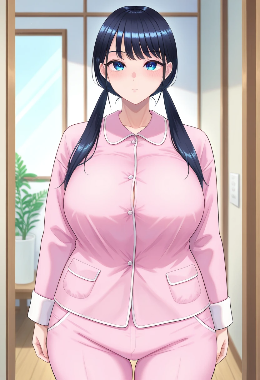miuww, blue eyes, black hair, long hair, twintails, large breasts,