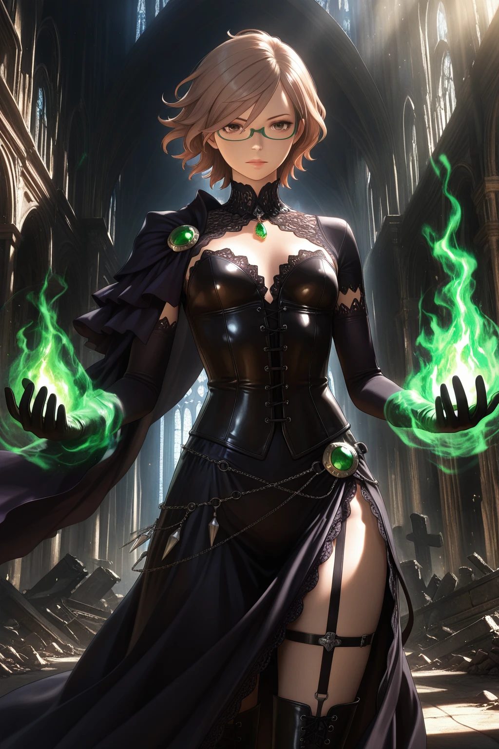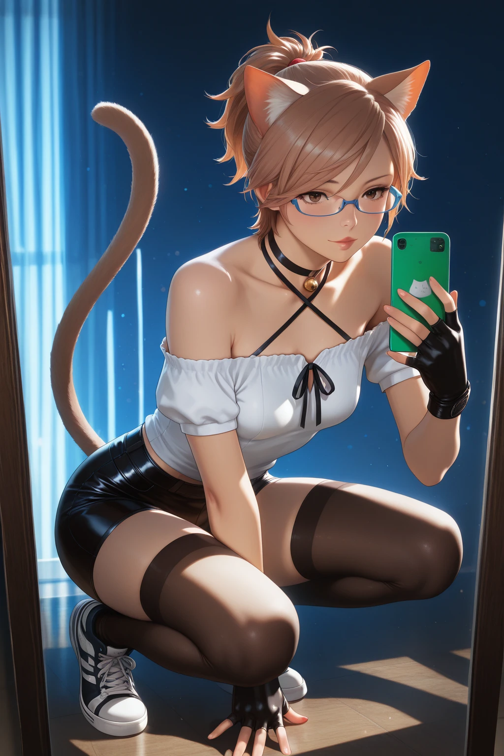 1girl, solo, short hair, light brown hair, brown eyes, small breastsAccessoires: