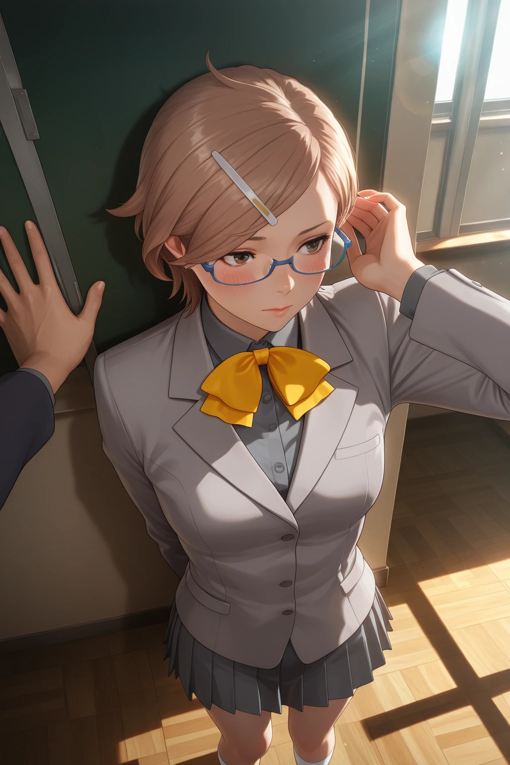 hairclip, yellow hairclip, glasses, blue glassesOutfit: