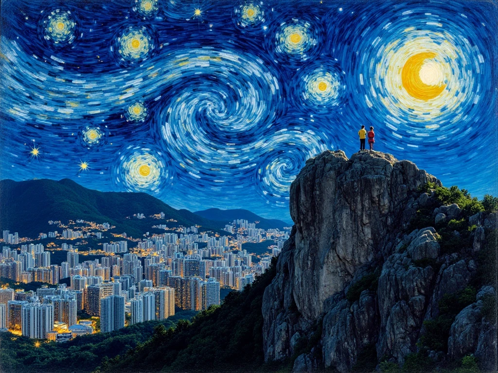 3. Artistic interpretations, like the Van Gogh-inspired 'Starry Night over Hong Kong'