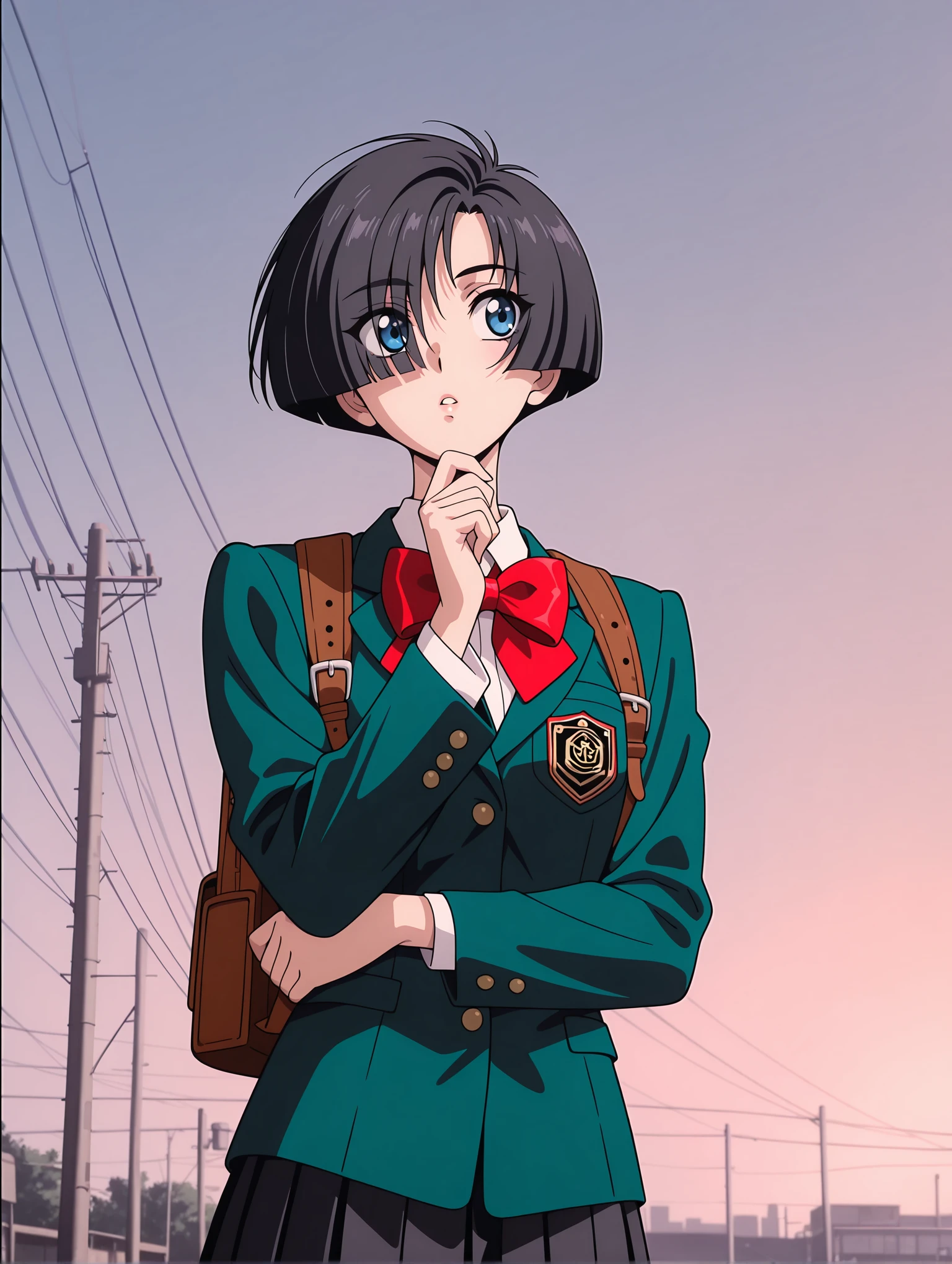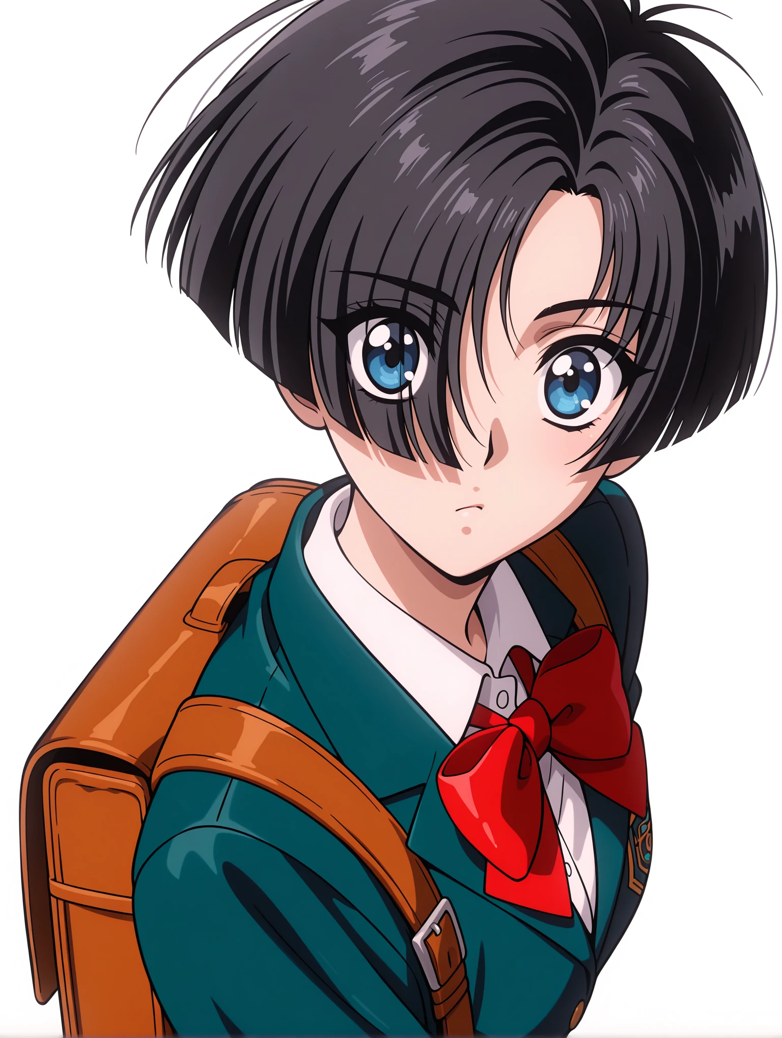 n_yuzuriha,black hair,bob_cut,blue eyes,hair over eyes,eyes visible through hair,