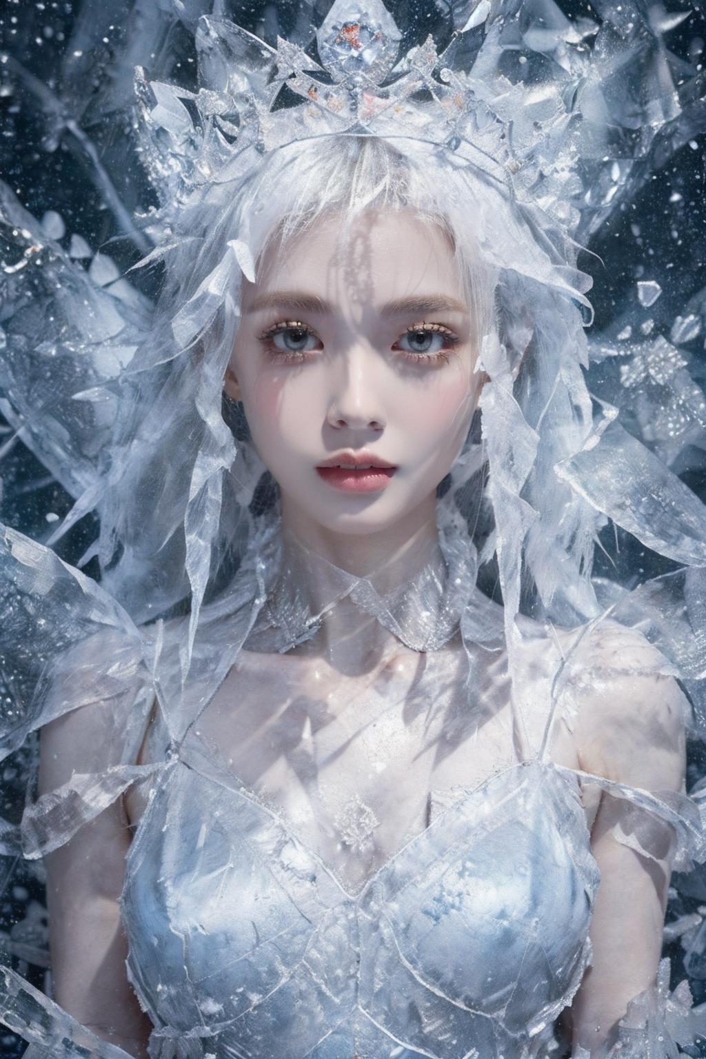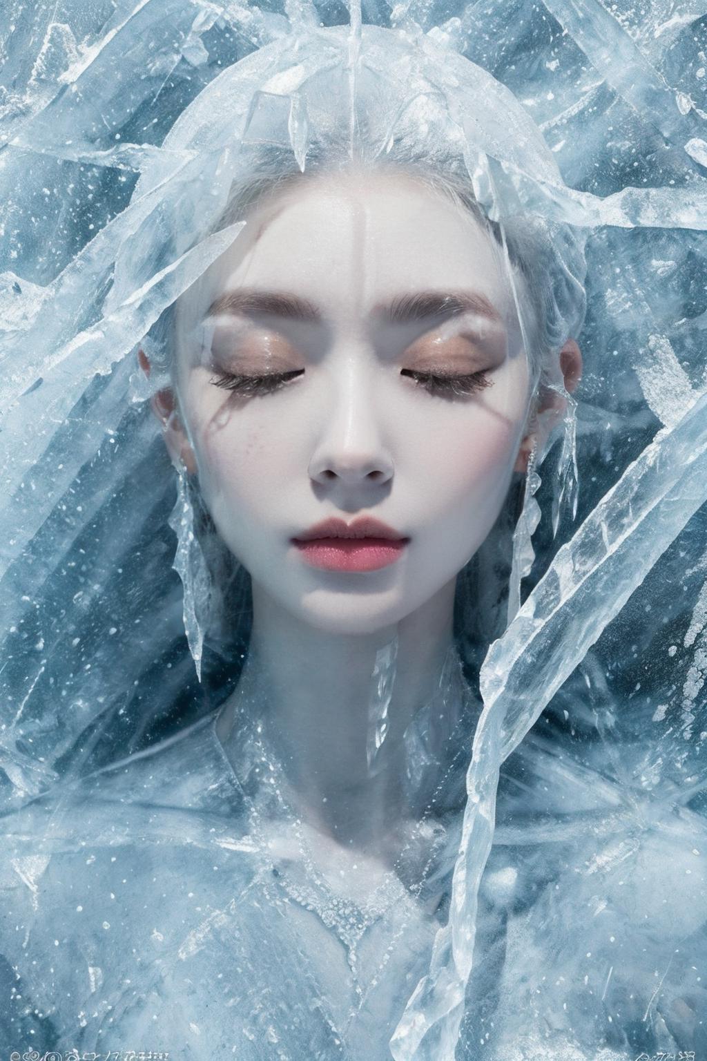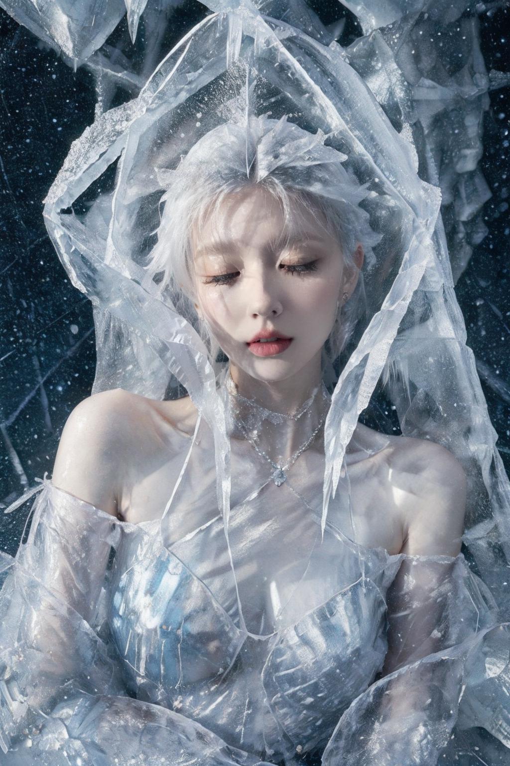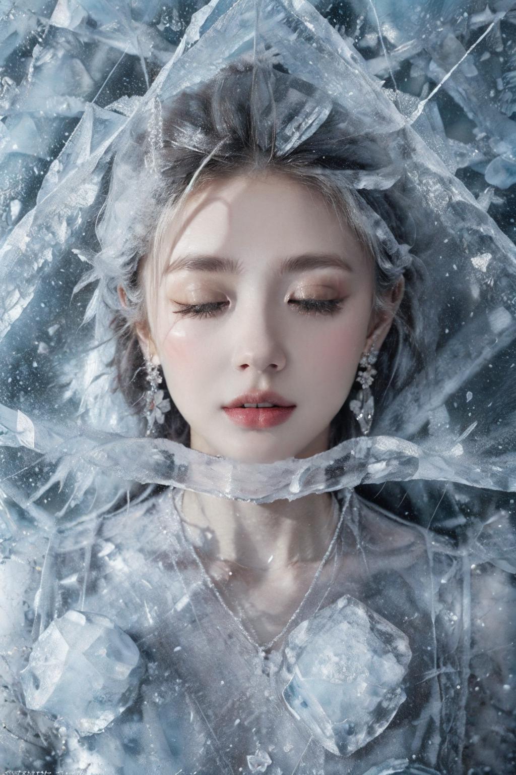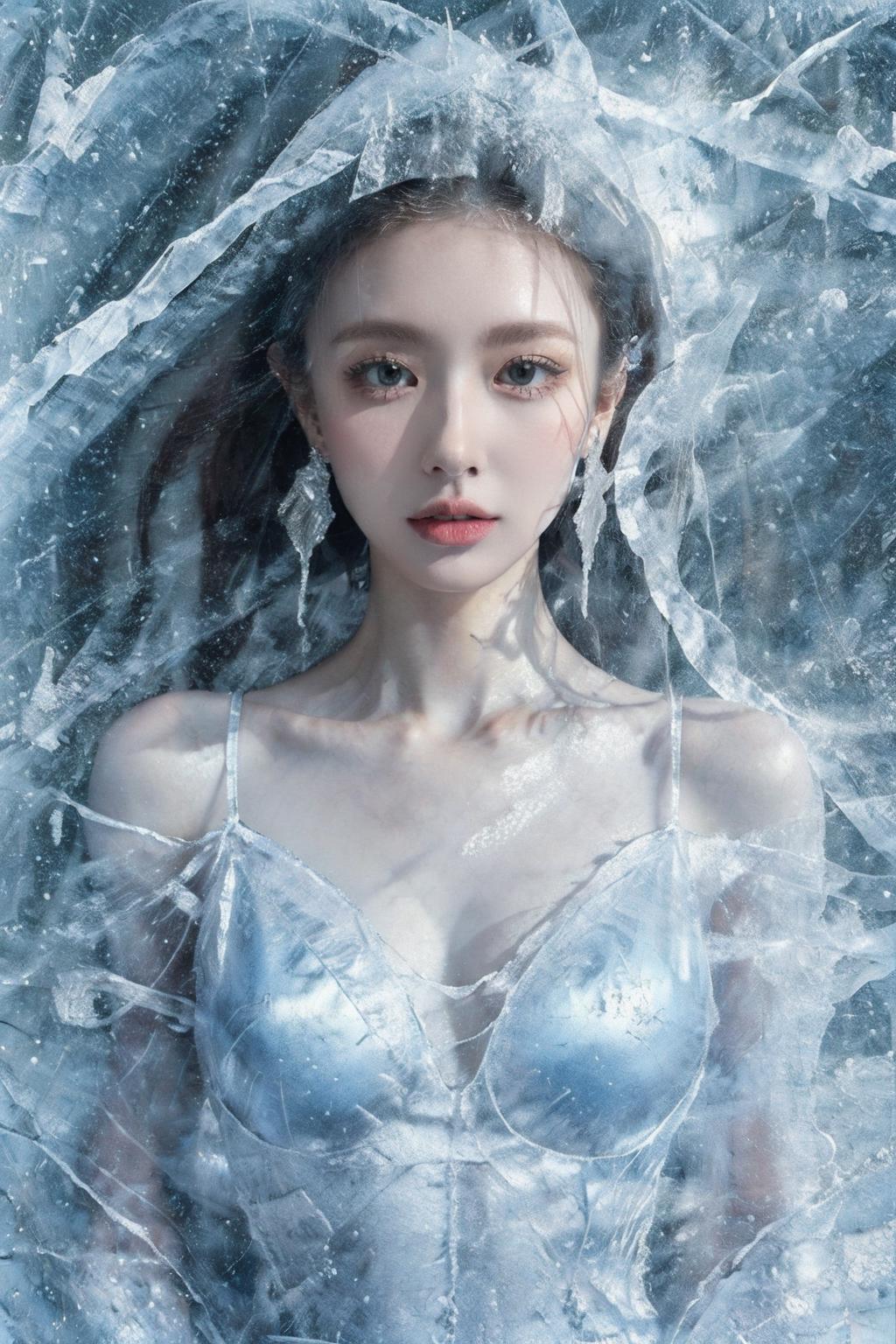 (Masterpiece, high quality, best quality, official art, beauty and aesthetics:1.2),1girl,solo,Ice wraps around the girl (lingering:1.2),(white chinese clothes:0.8),space,frost nova,ice ring,a bit like circular magic,<lora:ice cake_20231126200433-000018:0.8>,extremely detailed 8K wallpaper,(an extremely delicate and beautiful),intricate detail,exquisite eyes,ice bound,ice cake,(ice cracks:1.2),