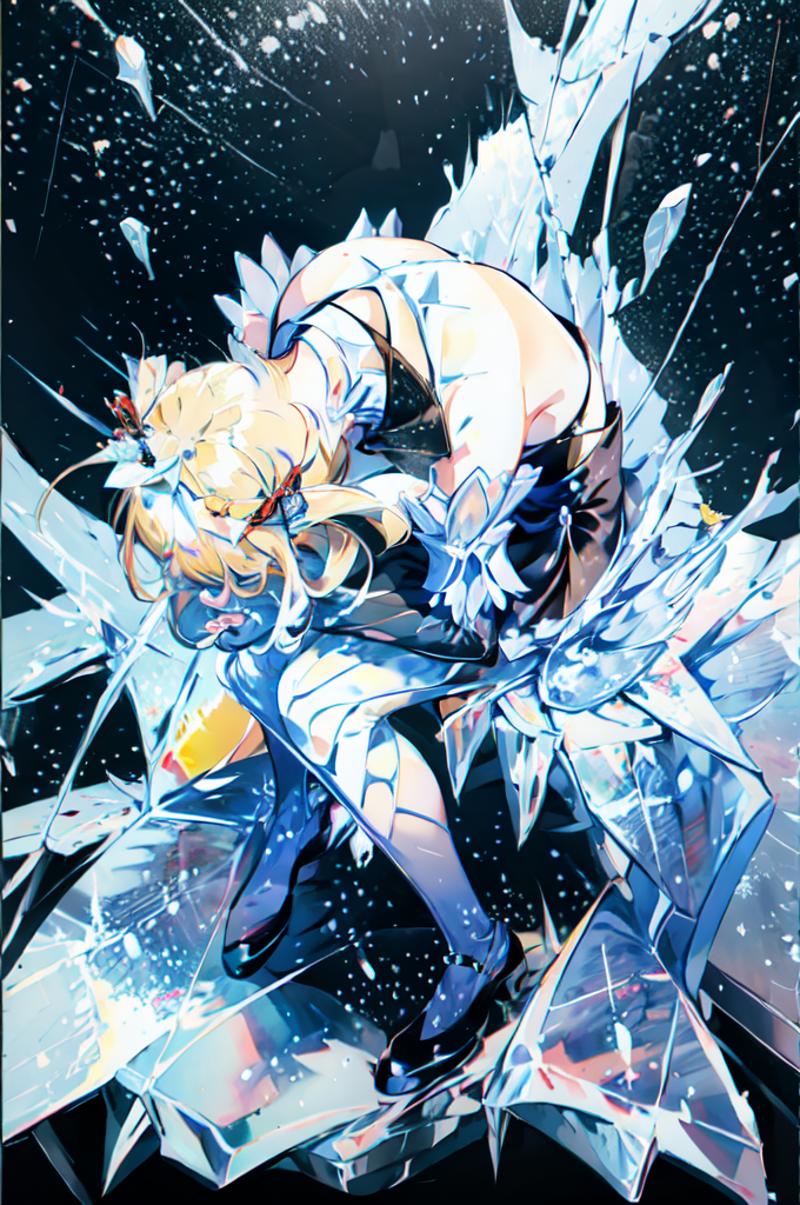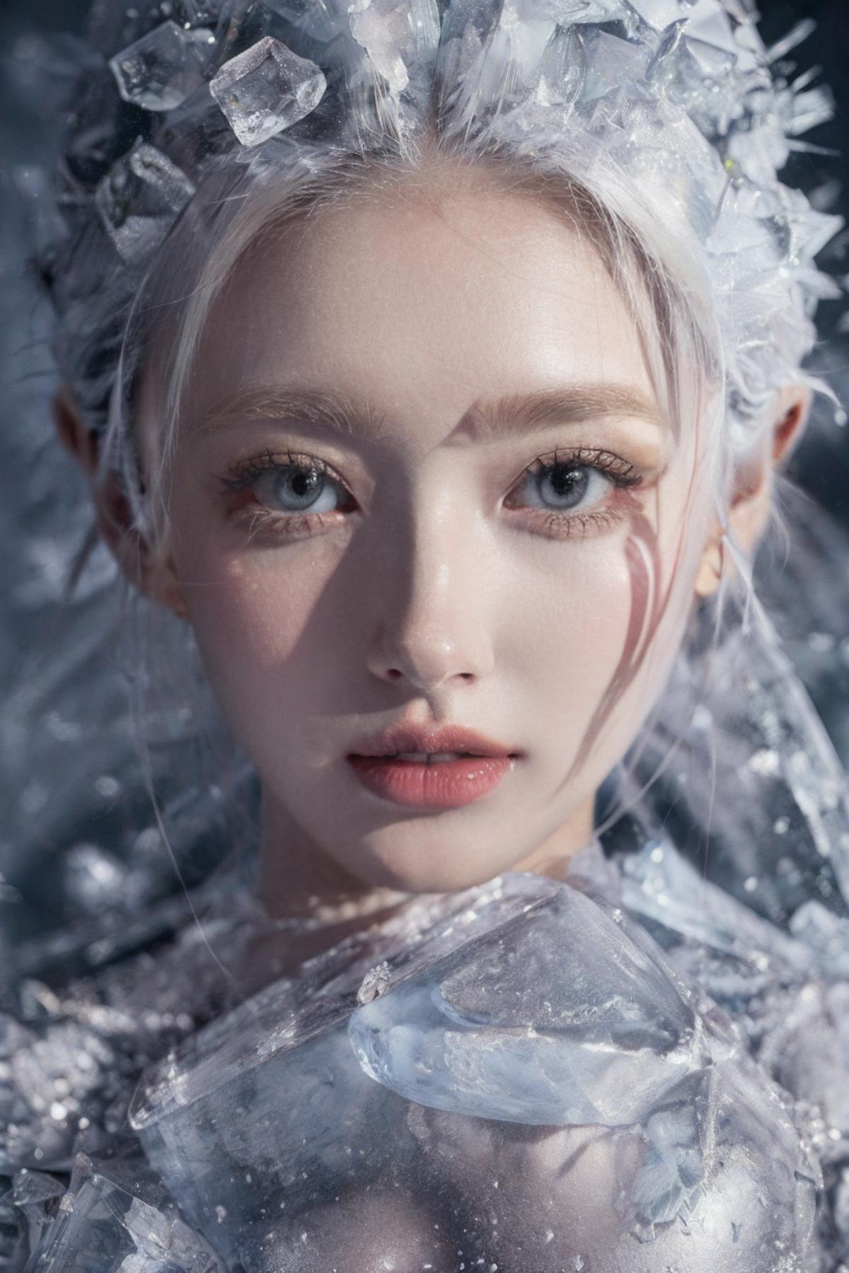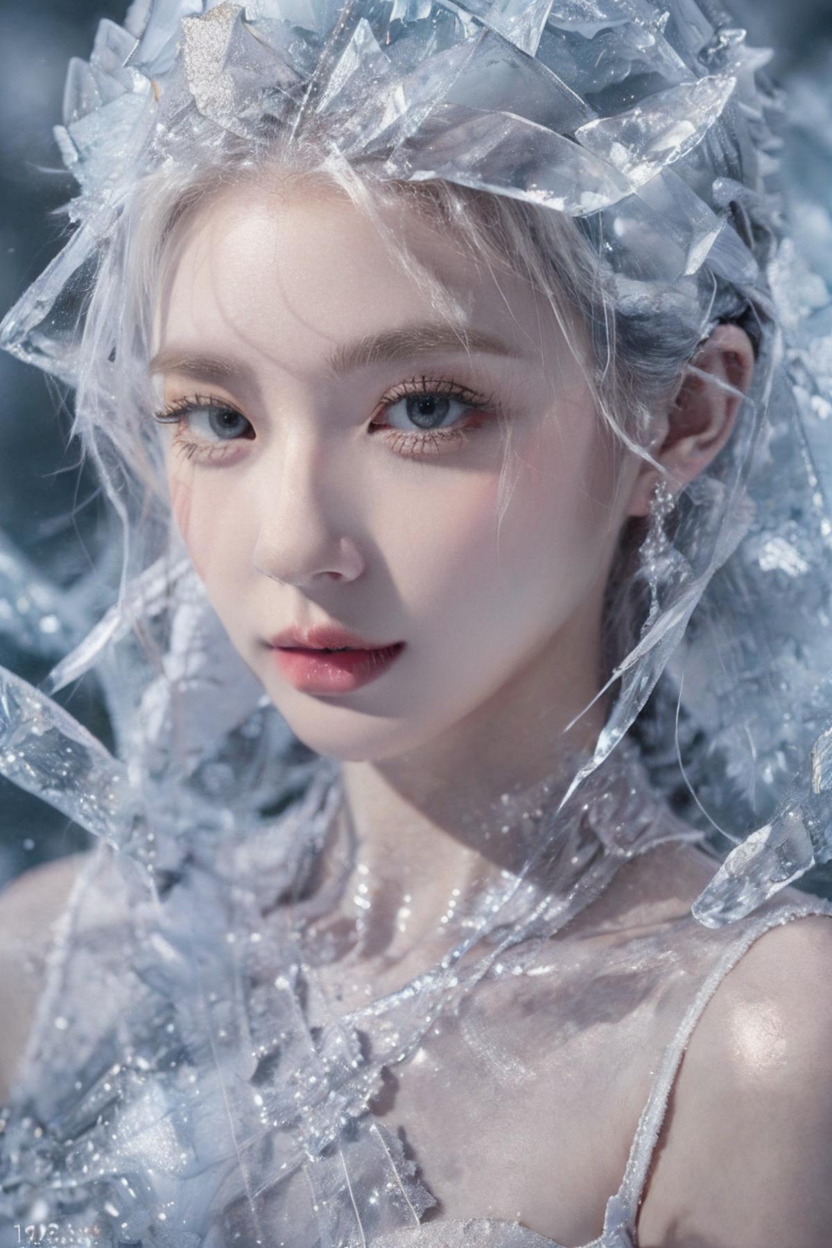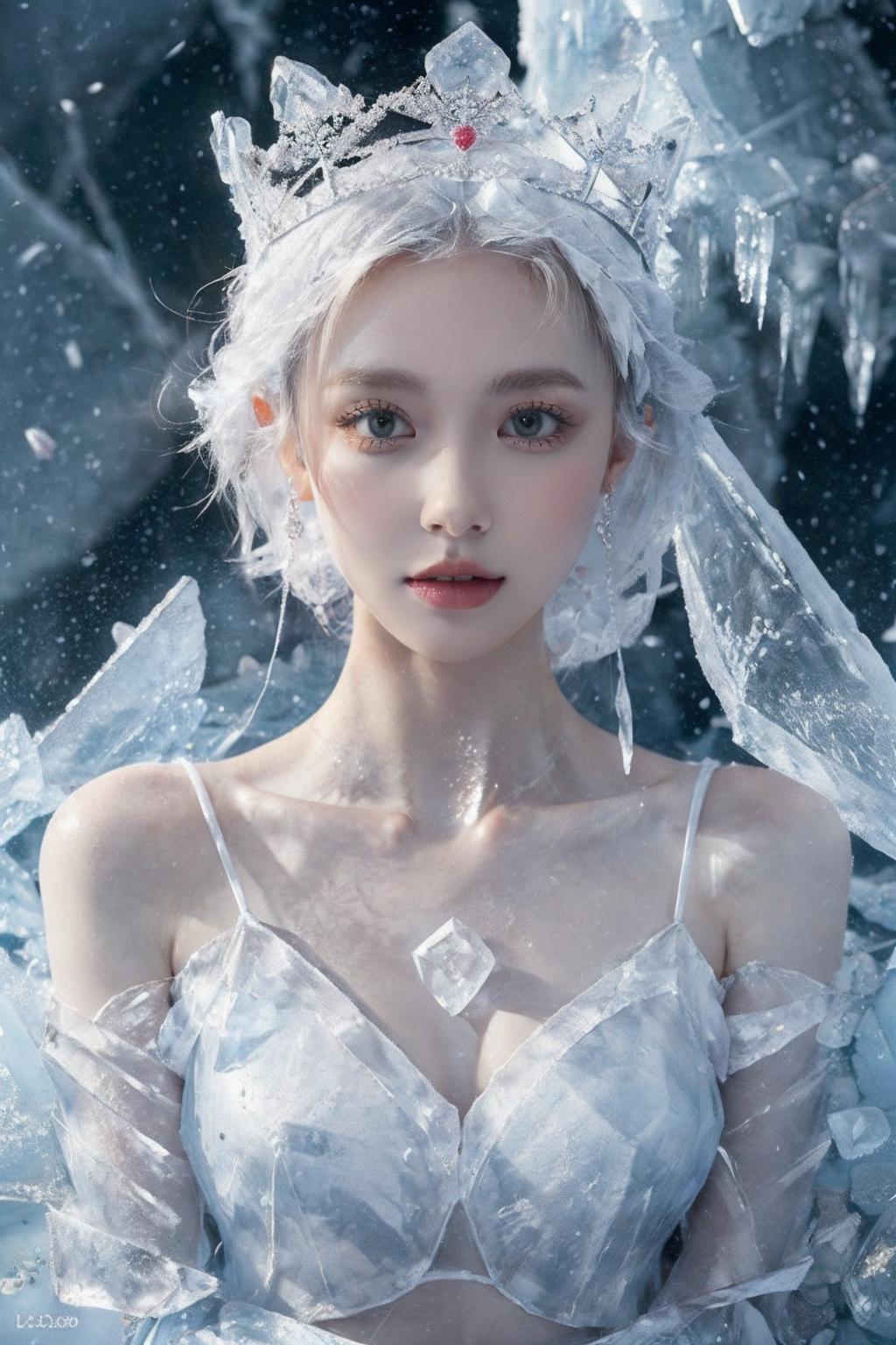 (Masterpiece, high quality, best quality, official art, beauty and aesthetics:1.2),1girl,solo,Ice wraps around the girl (lingering:1.2),(white chinese clothes:0.8),space,frost nova,ice ring,a bit like circular magic,<lora:ice cake_20231126200433-000018:0.8>,extremely detailed 8K wallpaper,(an extremely delicate and beautiful),intricate detail,exquisite eyes,ice bound,ice cake,(ice cracks:1.2),