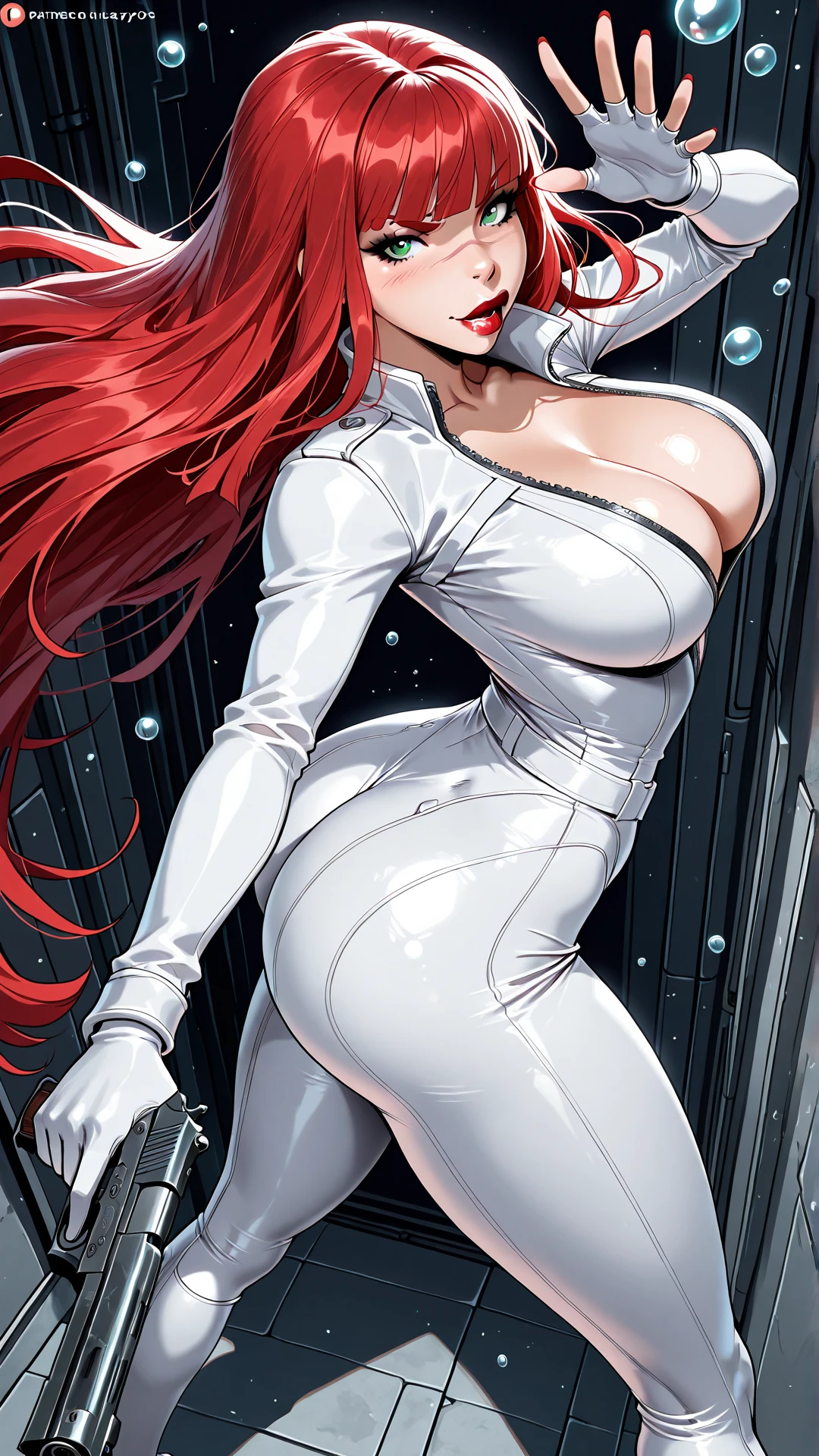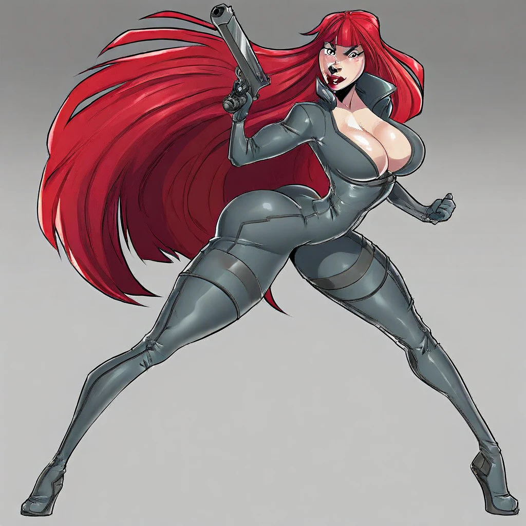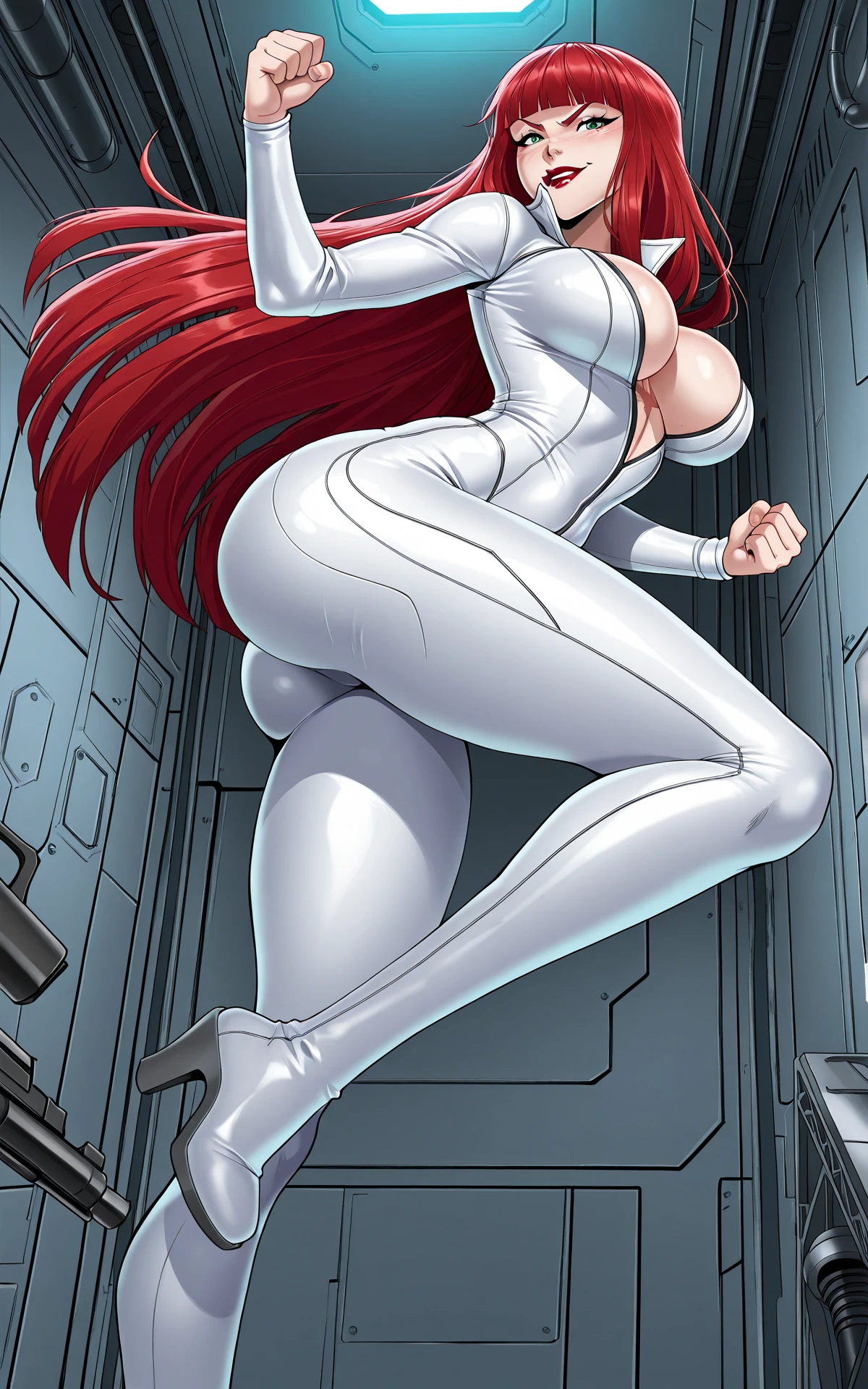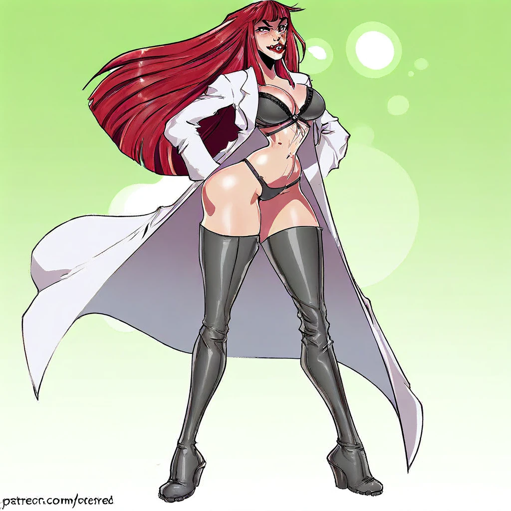 Brings Red Menace, a Soviet Supersoldier turned Mercenary now currently inhabited by the consciousness of a not-mad but still extremely angry scientist she kneecapped back in the 80s...Long story. Anyways, she's from Lady Valiant and is working off a government debt any way she can.