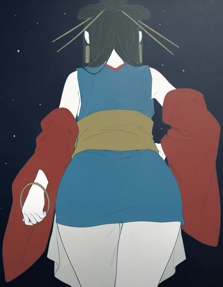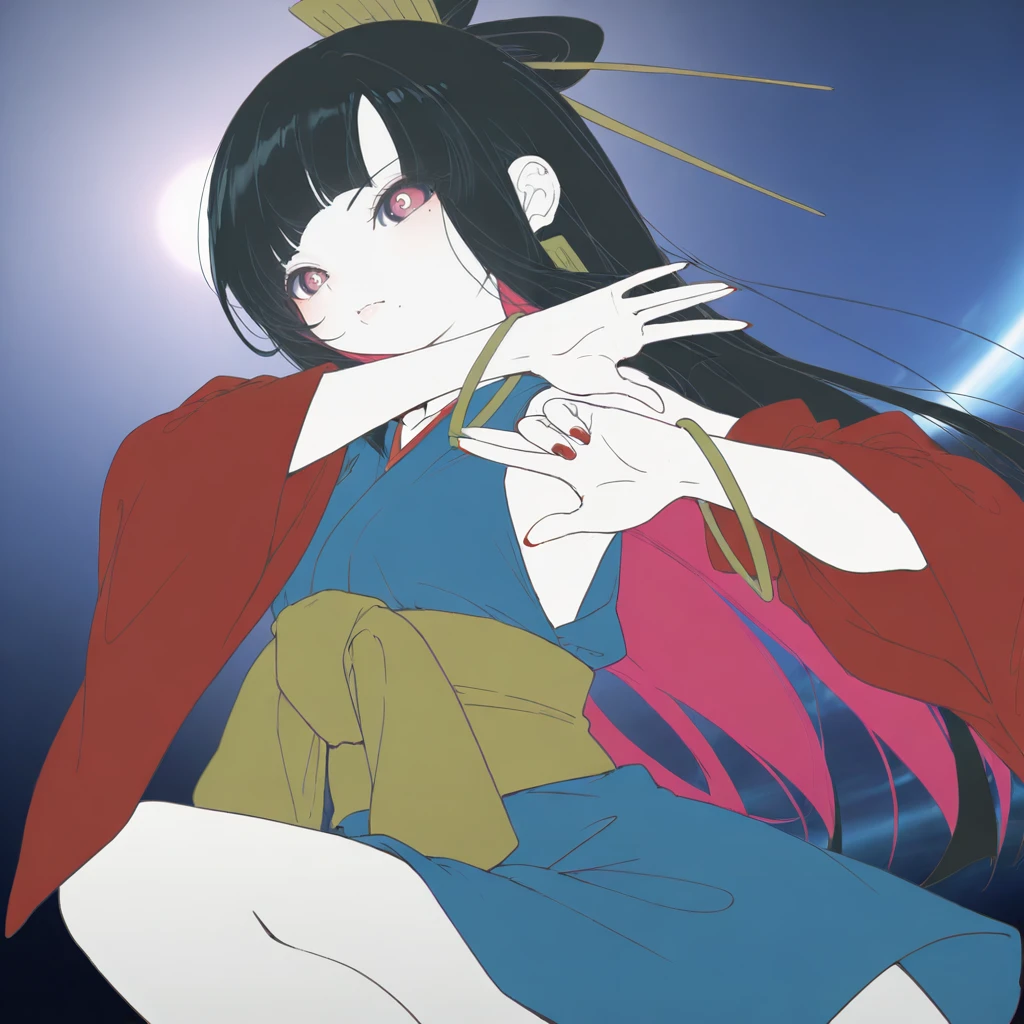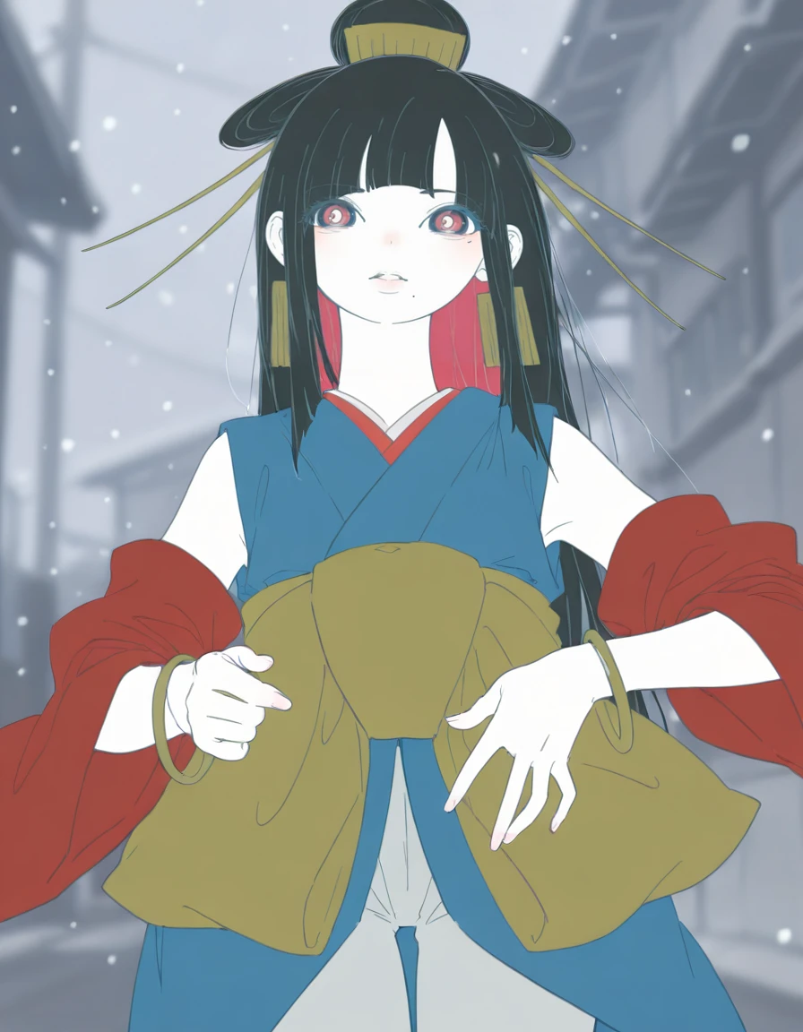 The amount of hair stick will always be different this is a feature of sdxl, the mole on the face will change position sometimes. You can try to get a mole on the left side of the character's body on the collarbone, it's in the dataset and caption, but it will be difficult and unstable I think. hakama short skirt, that's how that white part of the clothes is captioned, it varies quite a bit (as I think in the clip this part also changes so) yellow obi changes its size so much because in the clip the size also changes depending on how far away the character is. That black yellow thing, in the form of a big belt or I don't know what, is also there, but it only appears as an artifact and doesn't have a special caption. blue kimono caption exactly like that, not sure what it might affect, but you should know and like pink eyes, symbol-shaped pupils a character's eyes color cannot be called just pink, but I decided to go with this, if you are trying to achieve a special pink color, or a different symbol in pupils, it is recommended to change the weight of the word and add an additional prompt. The blue kimono sometimes becomes a dress underneath because the original clip does the same thing.