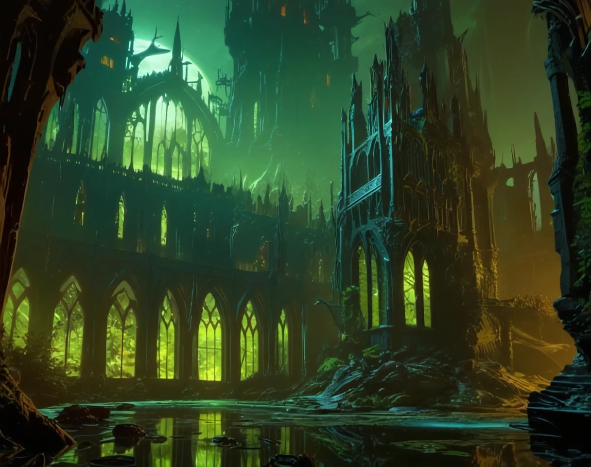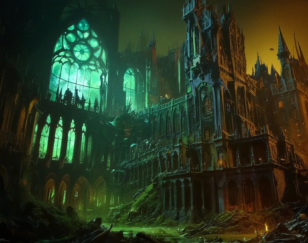 This is an SDXL lora for the style architecture from the Nurgle chaos faction from Warhammer.