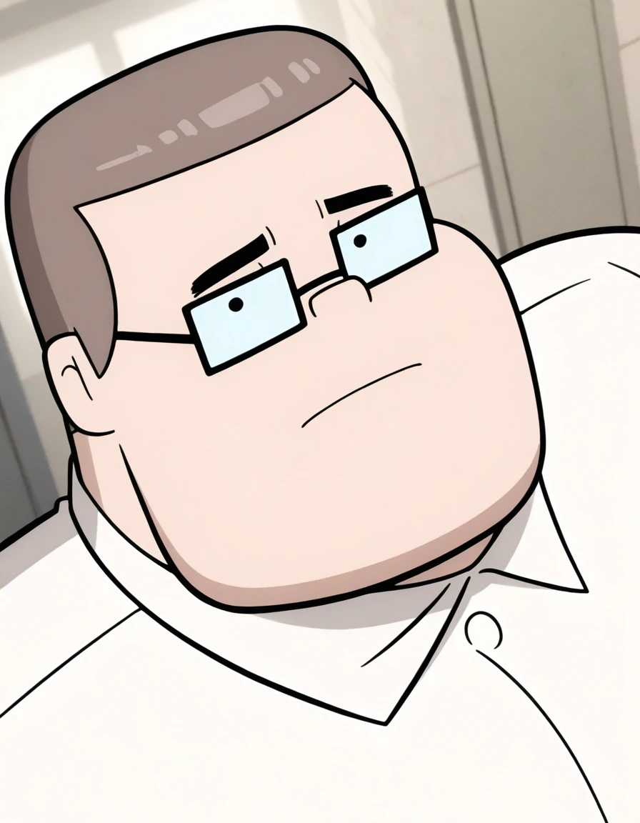 Octus-ARAI-IL, 1boy, male focus, brown hair, black eyes, glasses, fat