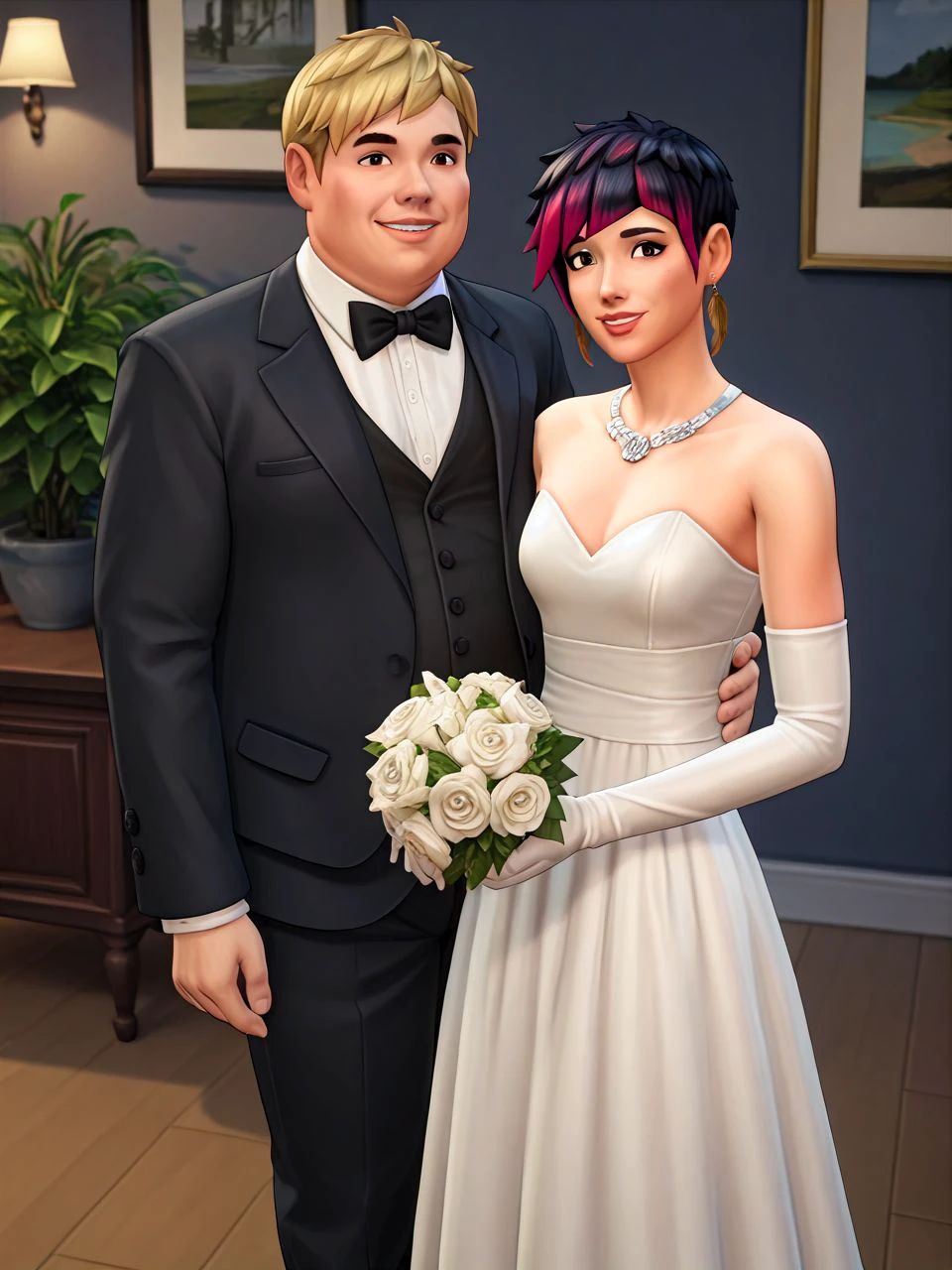 From the megahit life-simulation/god game/computer person ??????? simulator series, it's the pre-set characters that populate your towns, the townies from The Sims 4. These are and generally will be trained on screengrabs of the game or whatever official material exists of the townie.