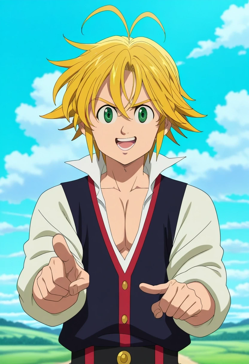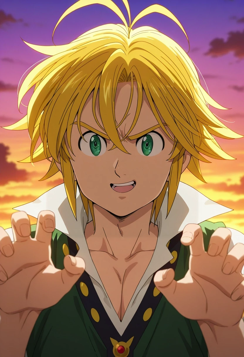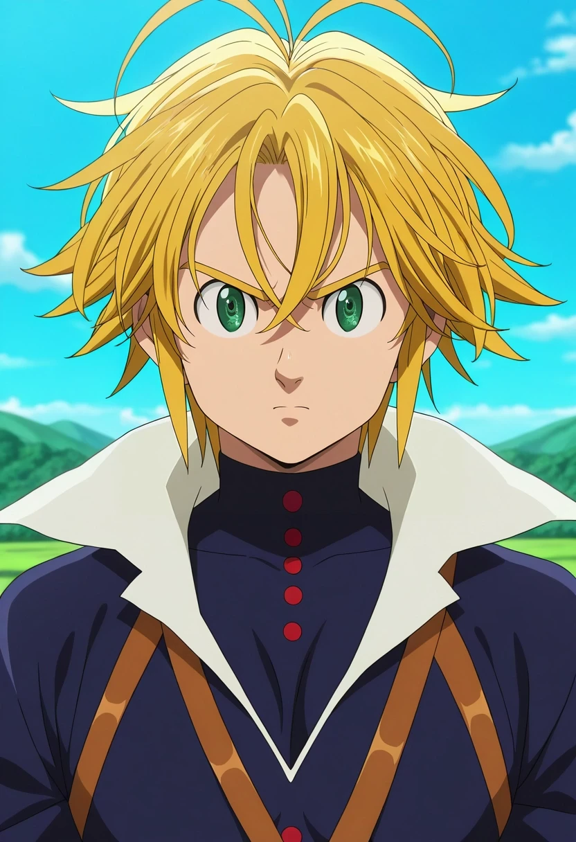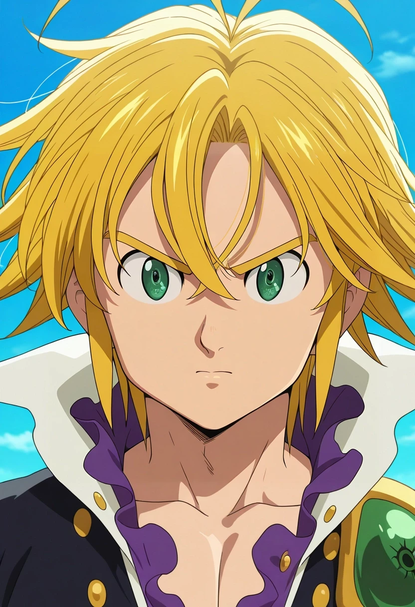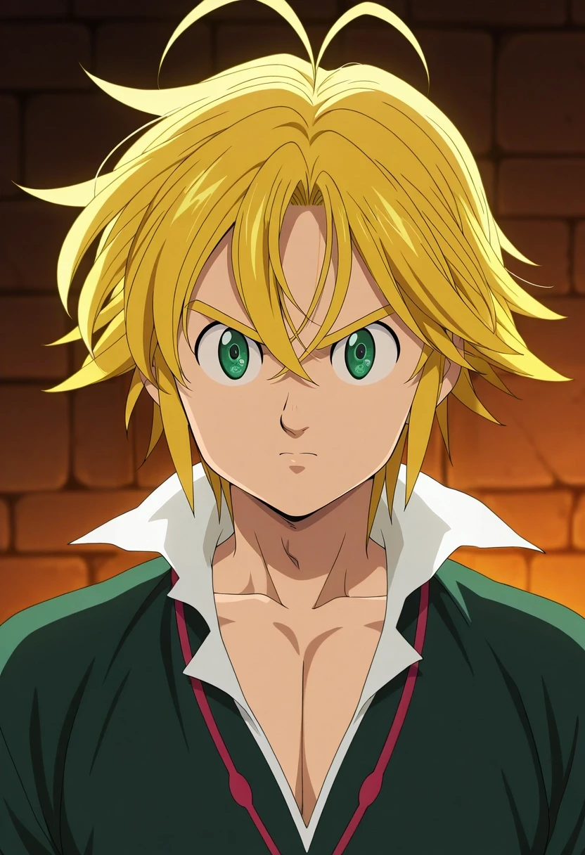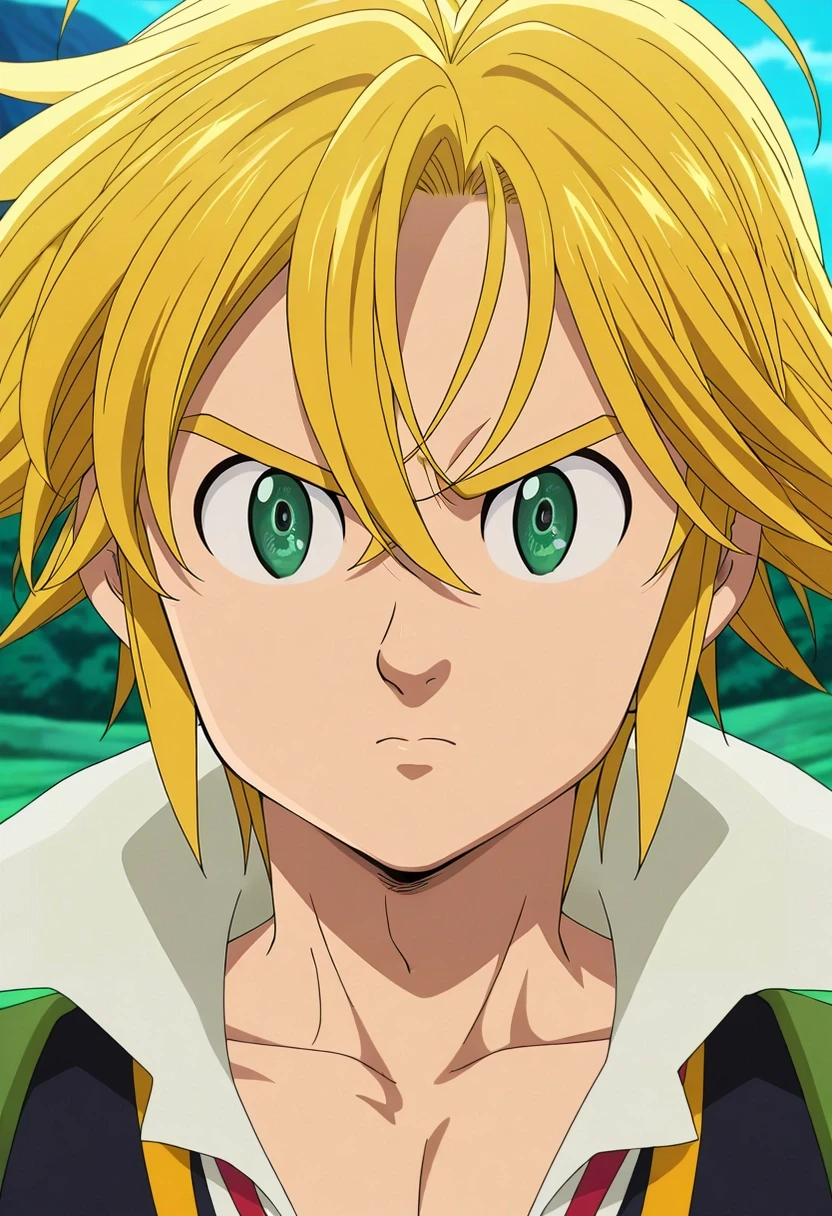 meliodas_nanatsu_no_taizai, blonde hair, green eyes, short hair, antenna hair