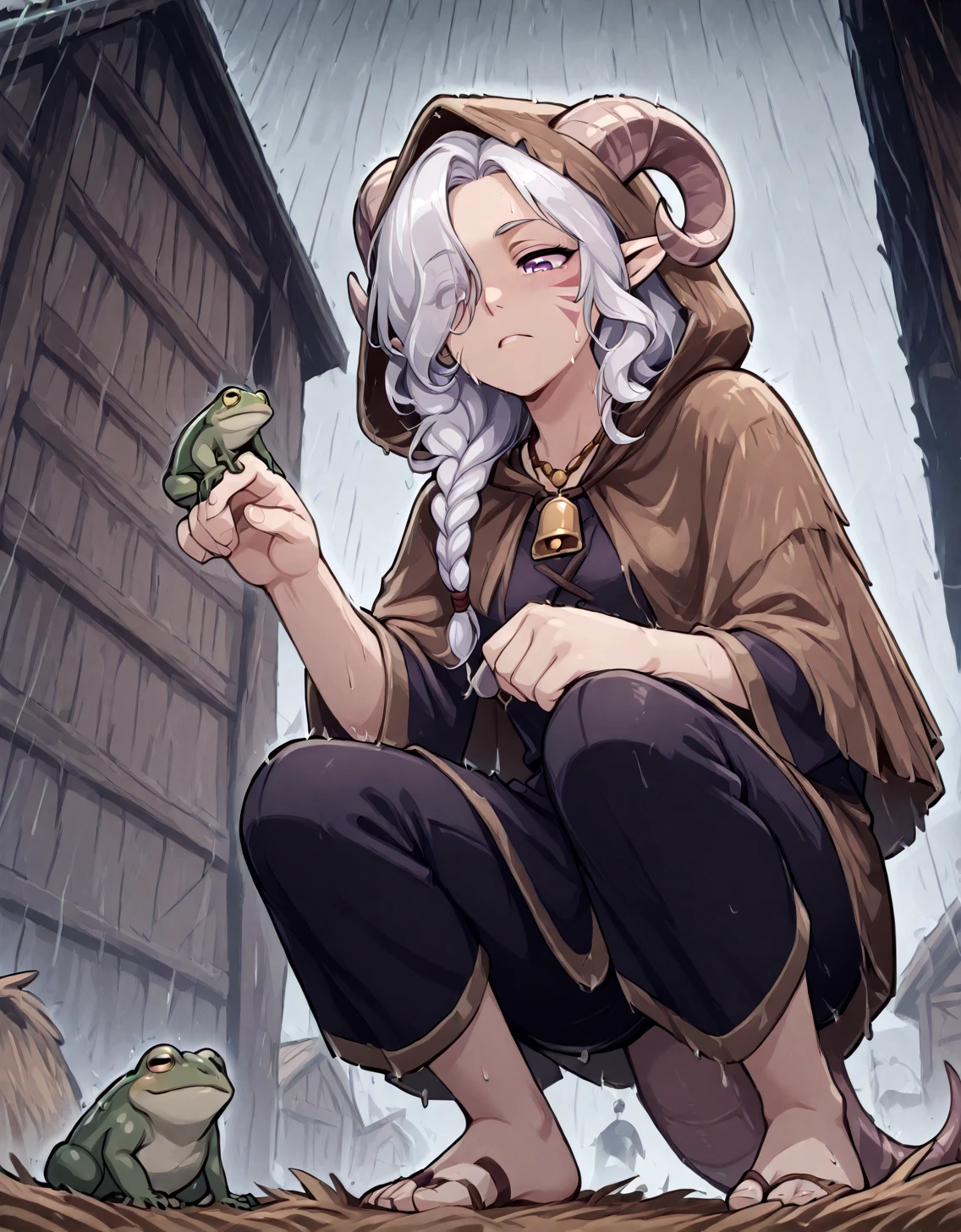 "A simple straw-woven cape, perfect for shielding oneself on rainy days.Beloved by both warriors and farmers alike,it provides practical protection regardless of rank or station.The faint warmth emanating from the straw wards off the cold,preventing the body from losing vital heat even in relentless rain.Lightweight yet sturdy, the straw resists soaking,serving as a reliable barrier against the elements."