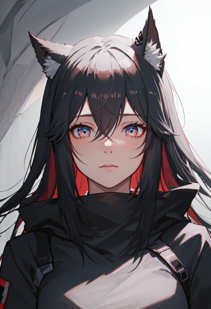 - The pruned character tags are animal ears, black hair, long hair, wolf ears, animal ear fluff, hair between eyes, multicolored hair, red hair, wolf girl, breasts, two-tone hair, tail, wolf tail, colored inner hair. You can add them into prompts when core features (e.g. hair color) of character is not so stable.