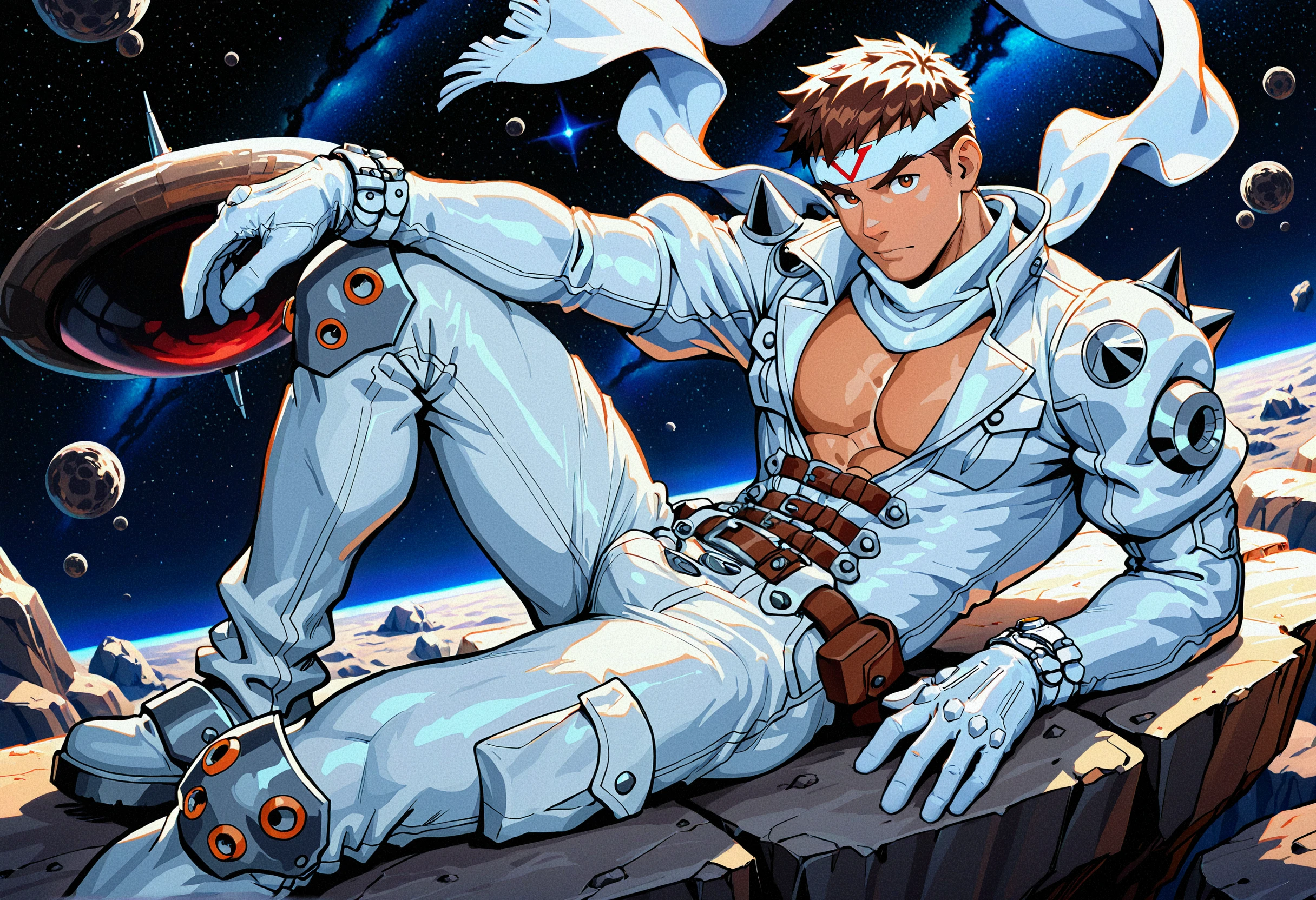 headband, scarf, shoulder spikes, jumpsuit, beltThis is not a Pony model, and should not use Pony quality tags. Prefix with