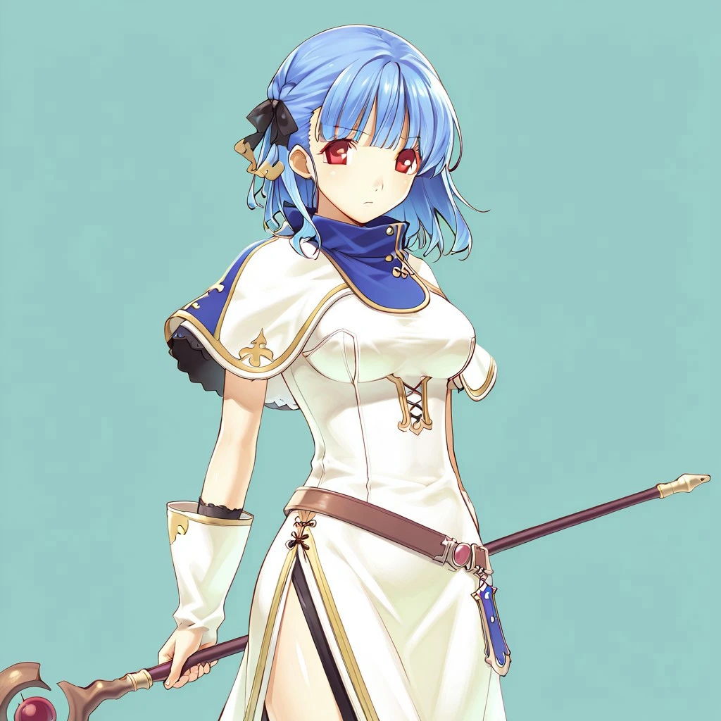Aria: BlaSou, Aria, blue hair, short hair, wavy hair, red eyes, medium breasts