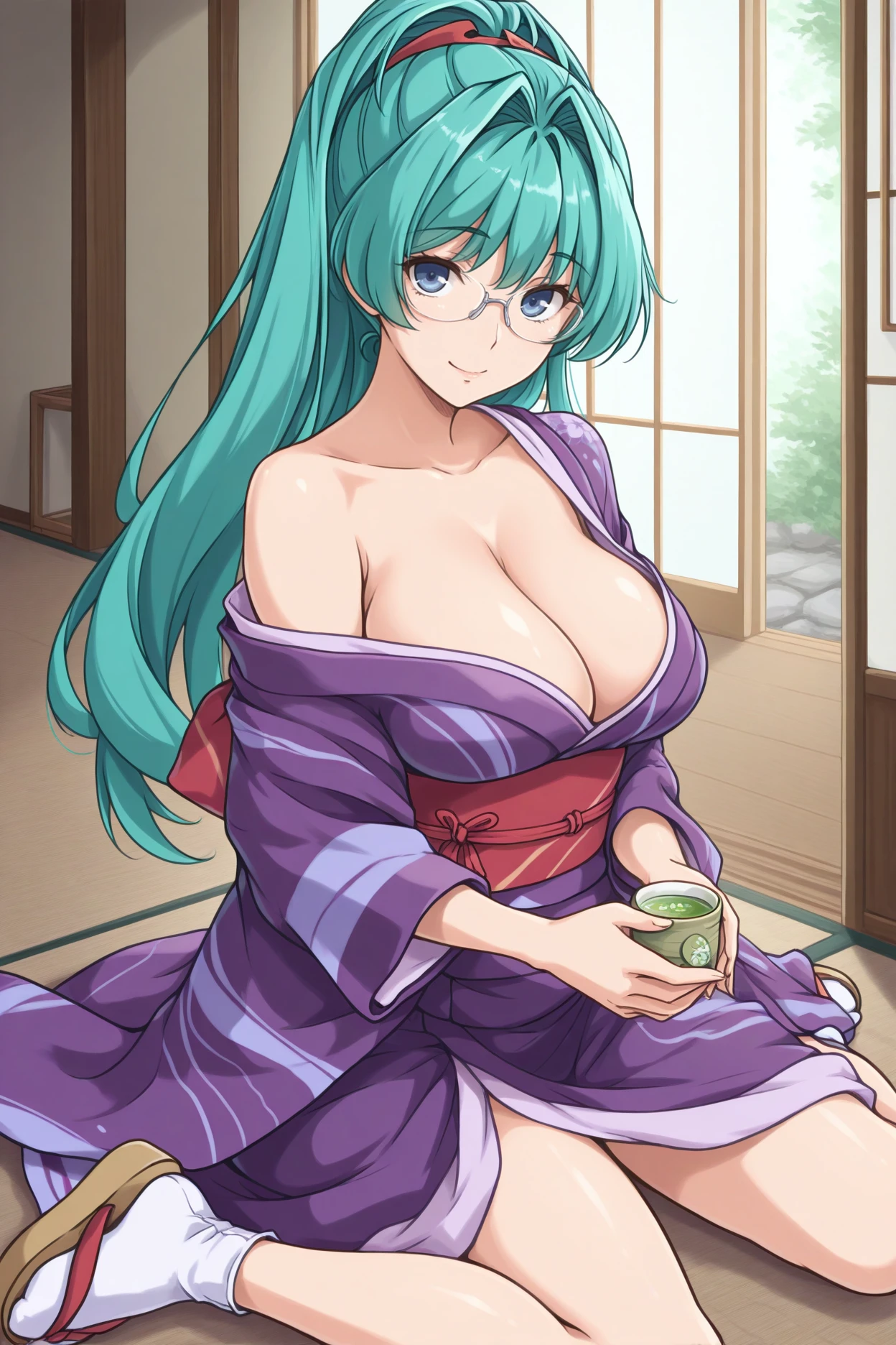 srtagc, aqua hair, hair intakes, high ponytail, long hair, blue eyes, large breasts