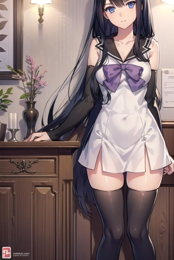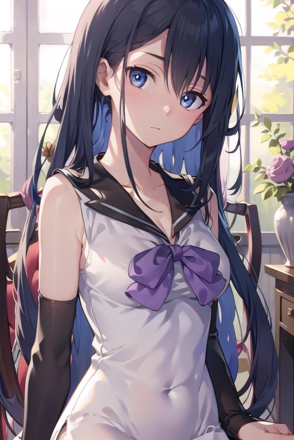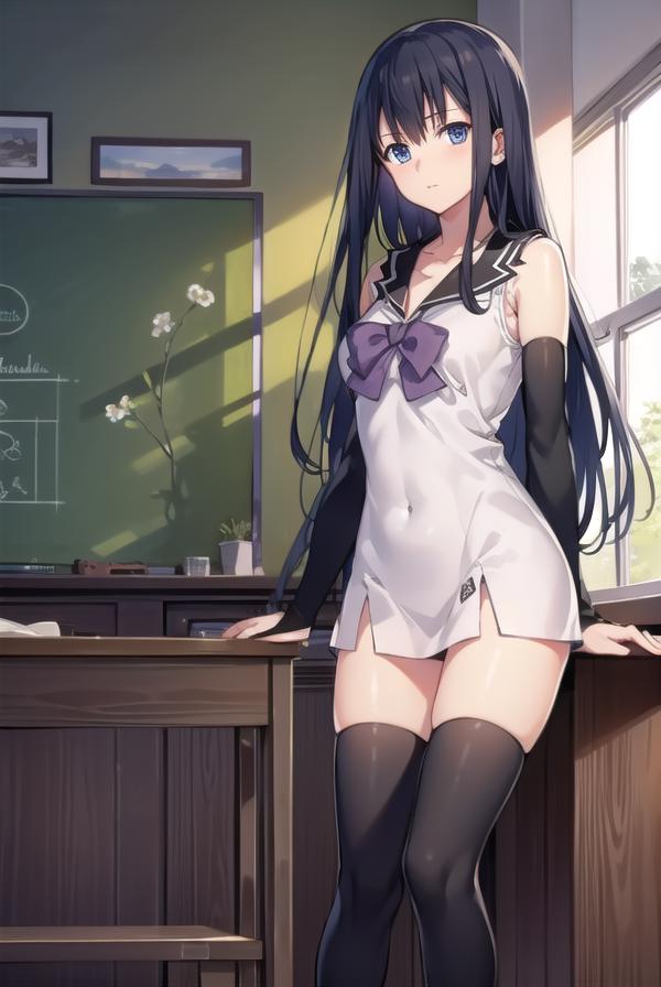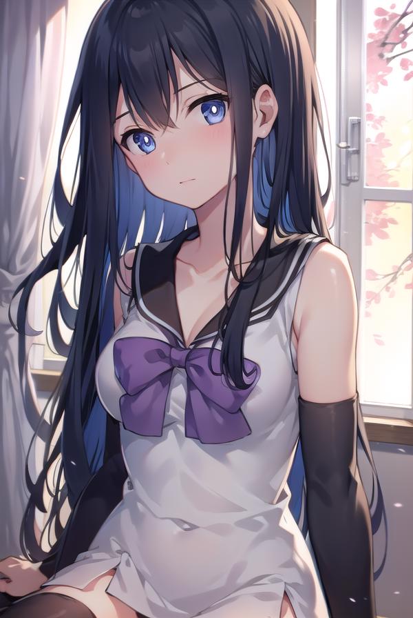 bow, collarbone, sailor collar, sleeveless, thighhighs, black thighhighs, zettai ryouiki,