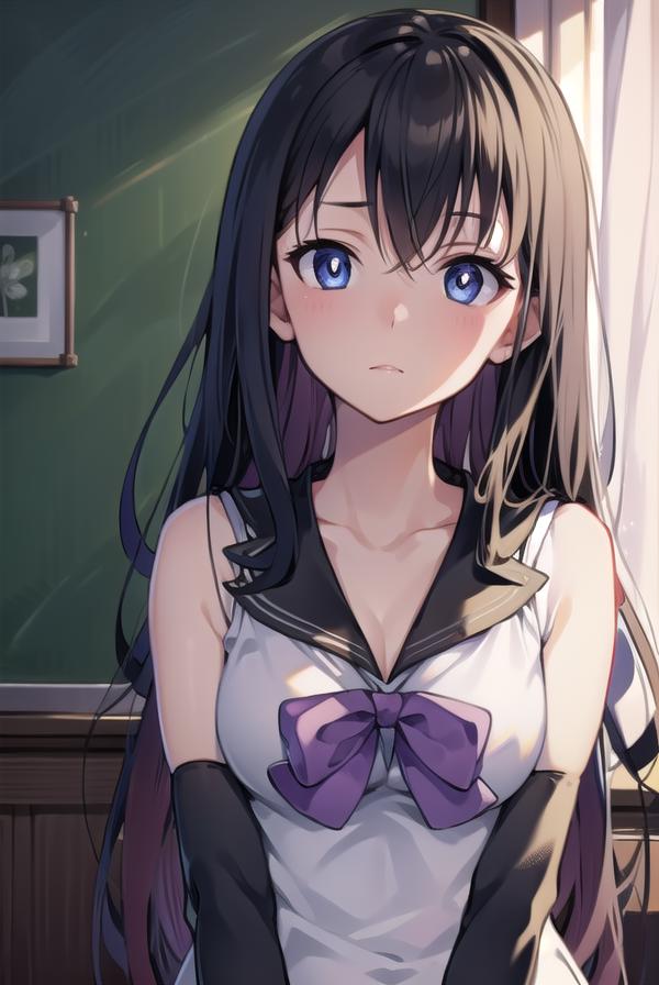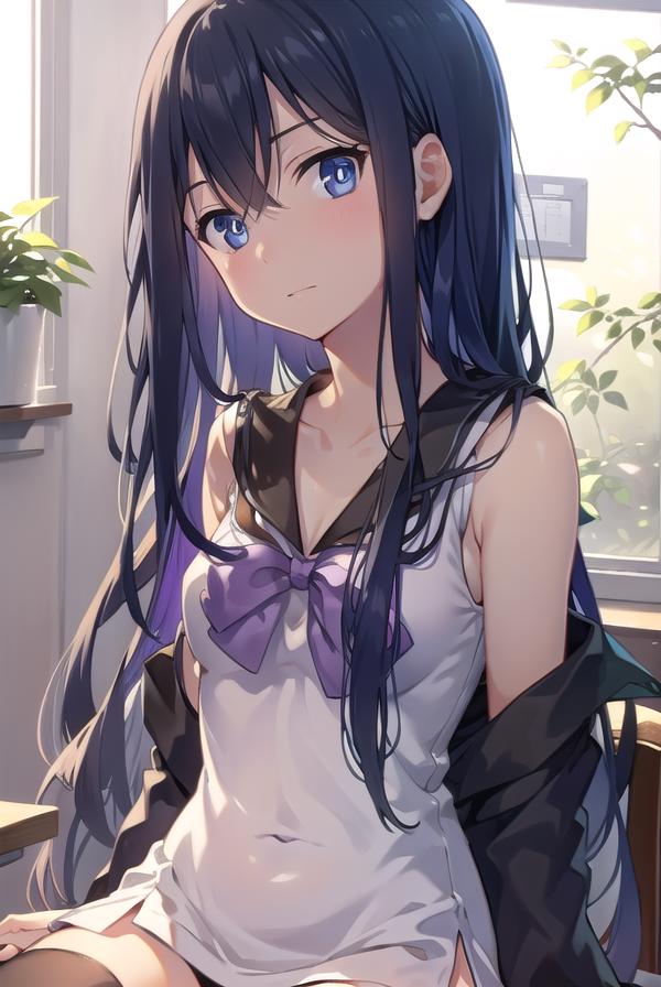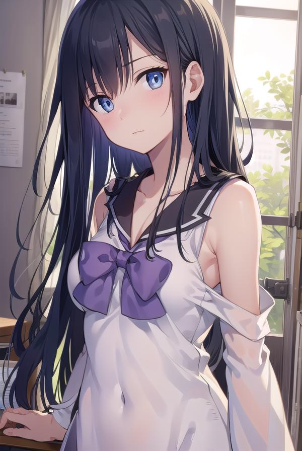 neko kuroha, black hair, blue eyes, long hair, hair between eyes,