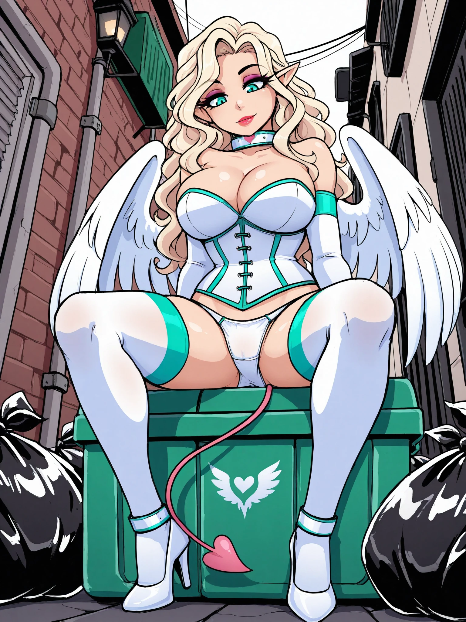 A submissive angel who fell from Heaven for one reason in particular... The ??? is just better down in the underworld! This character is the fallen angel Caley from LordDragonMaster's "Demon Candy" story which you can find on their DeviantArt page (sincerely I recommend checking it out if you haven't, I enjoyed it and recently revisited it). I don't think I'd do each of their characters, but I'm tempted to also do the protagonist including some of the transformations they undergo through the story. Weight I recommend is 0.75 but 0.9 can also work, and obviously clip skip 2.