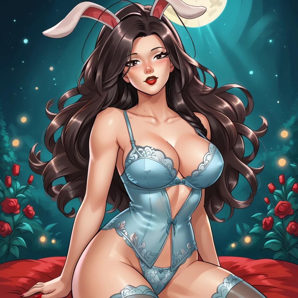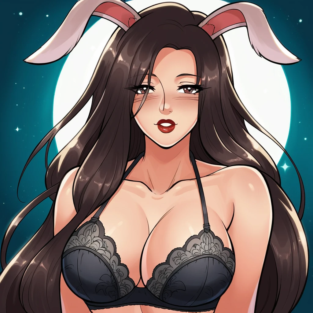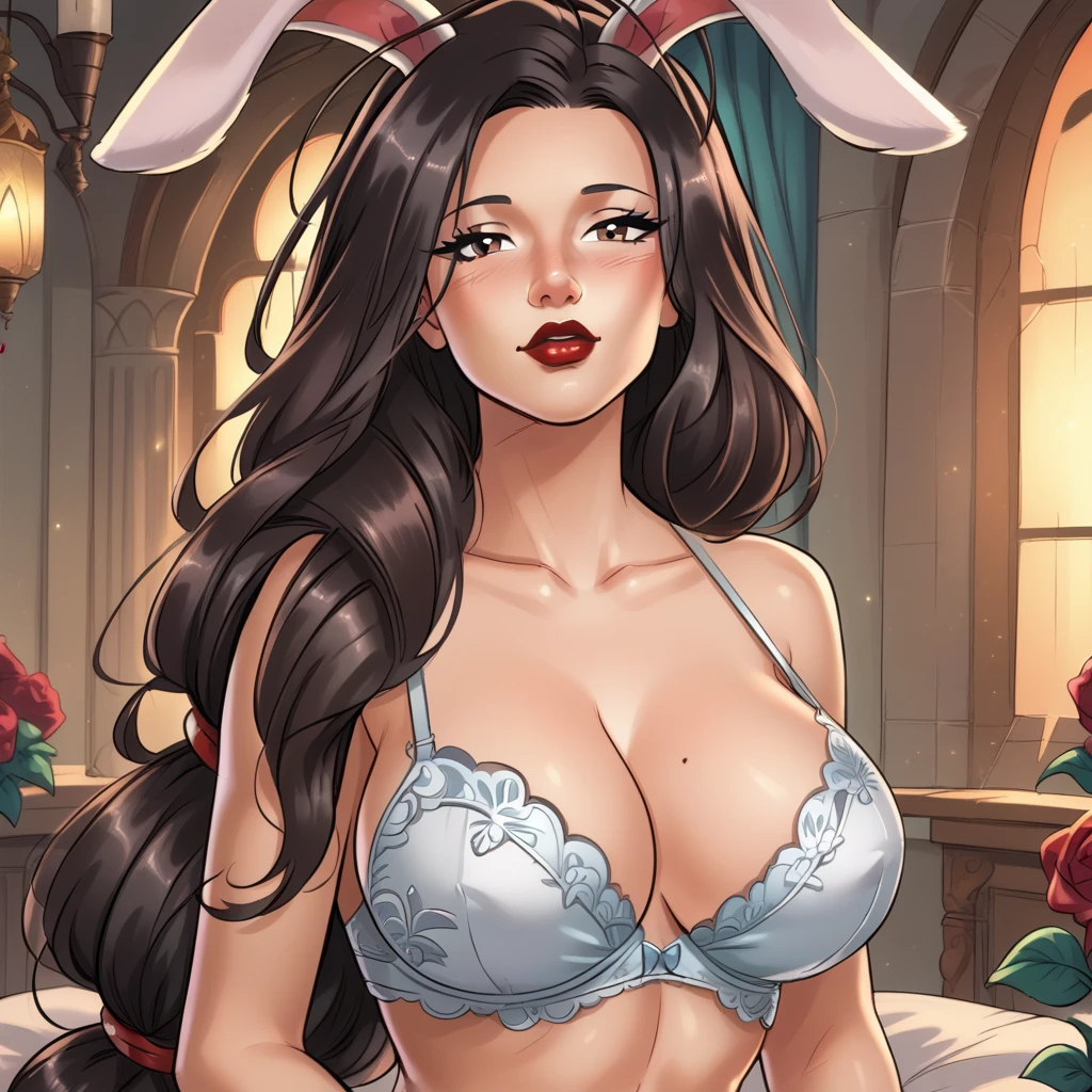 Trigger words: Louise Carrot, dark hair, white bunny ears, brown eyes, red lips