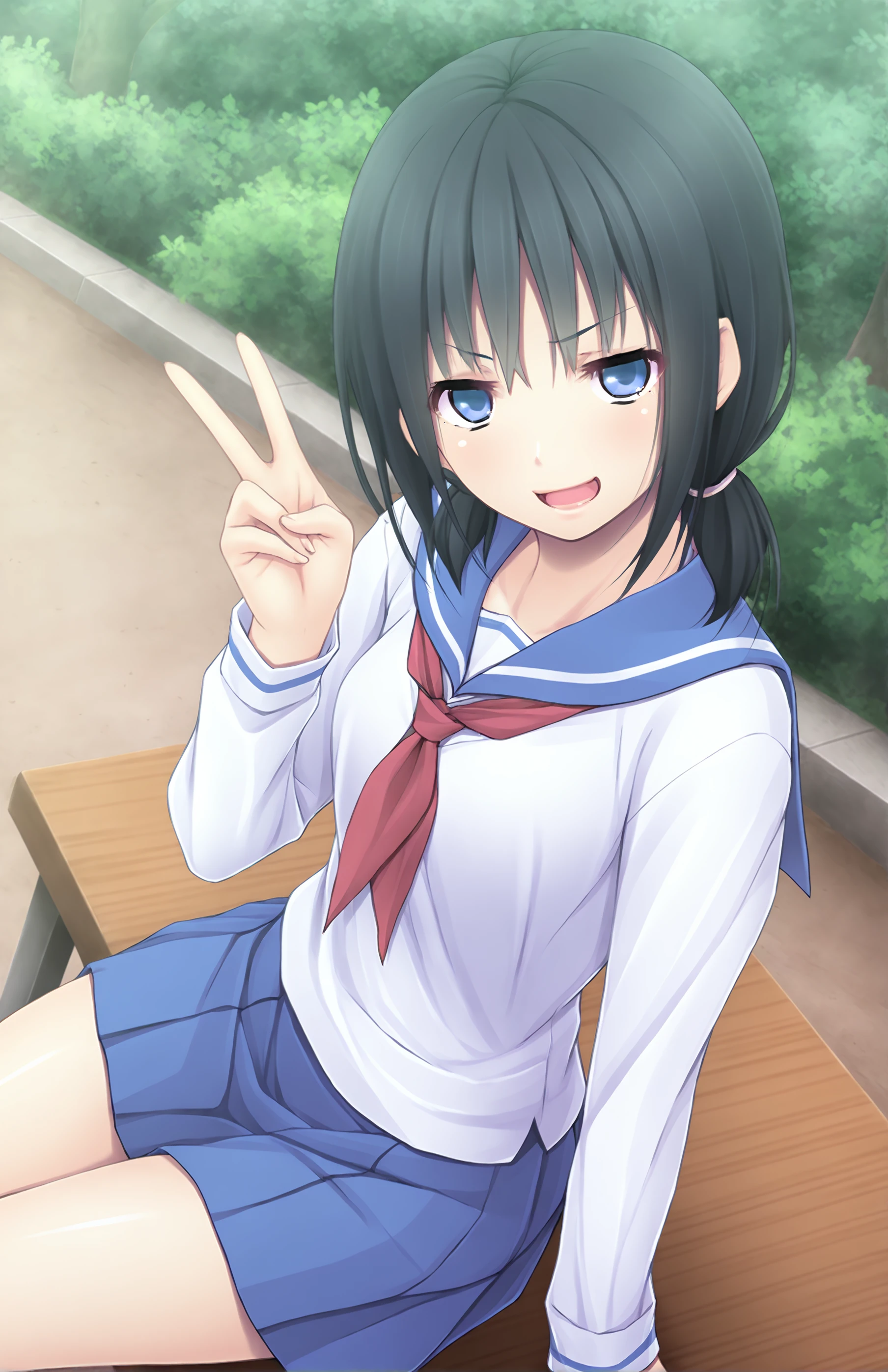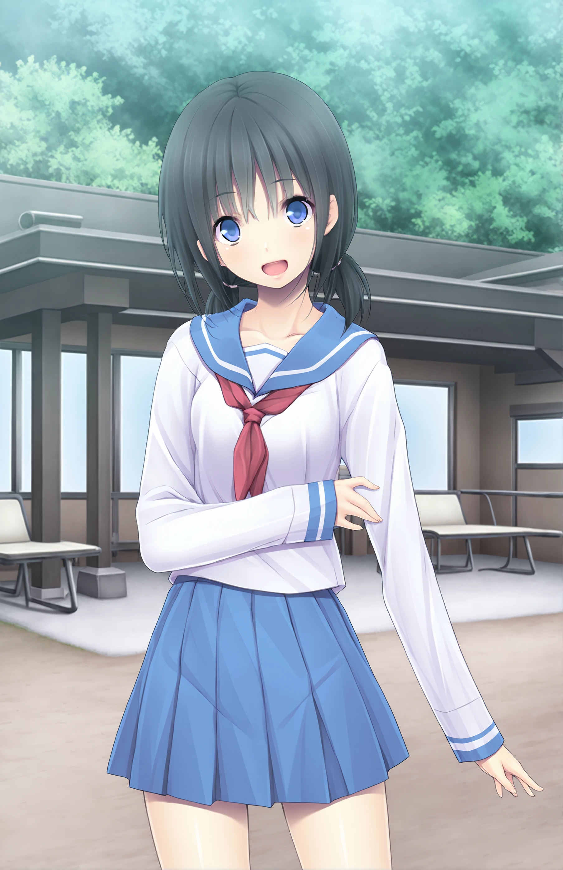 NondaMako, blue eyes, skirt, black hair, twintails, school uniform, serafuku
