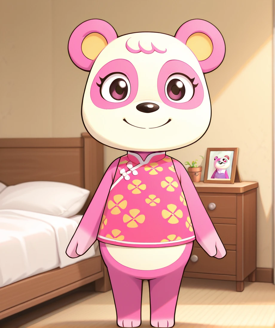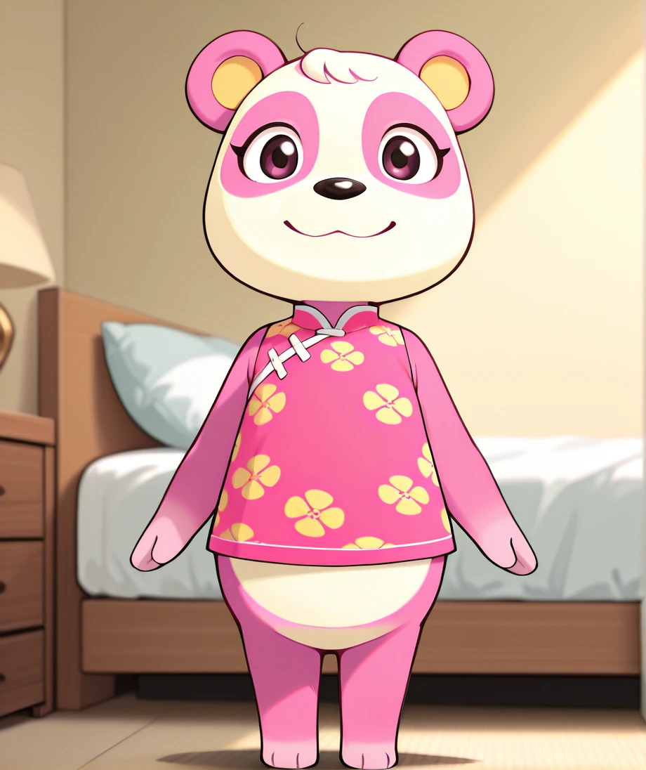 pinkyAC, bear girl, panda, pink and white fur, solo, 1girl, furry, panda, furry female