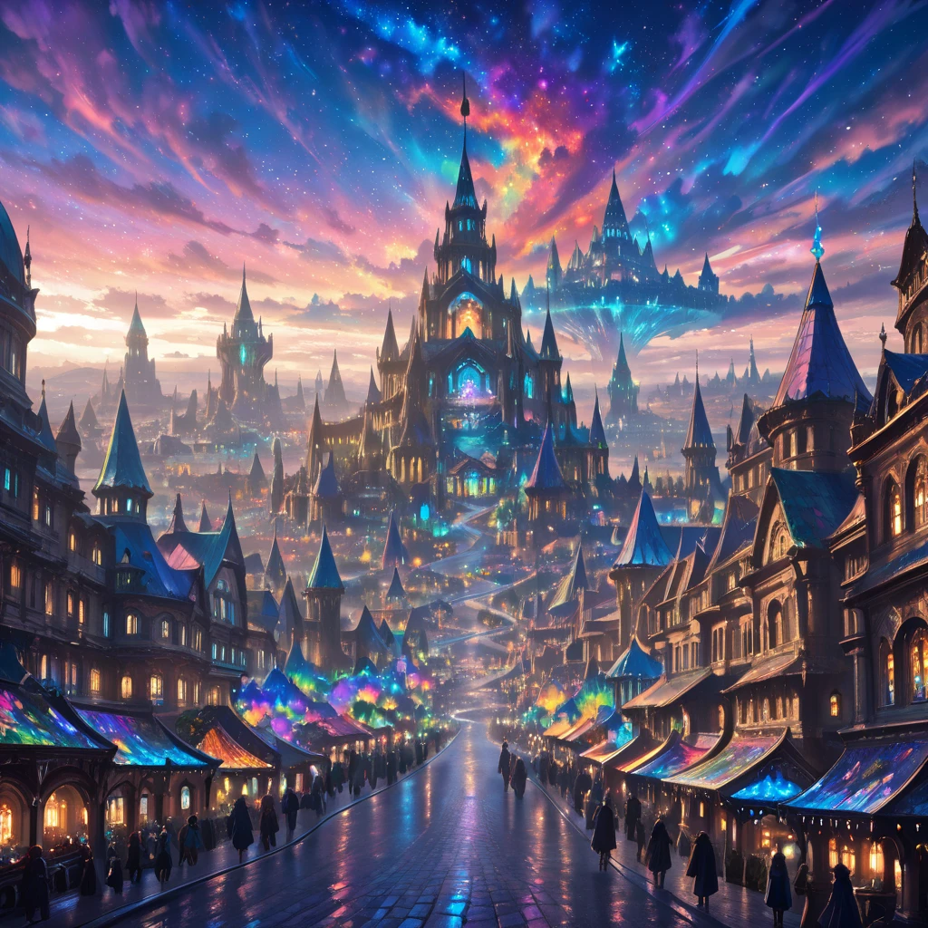 Glowing city, fantasy city, brillant, glowing world, glowing sky, detailed